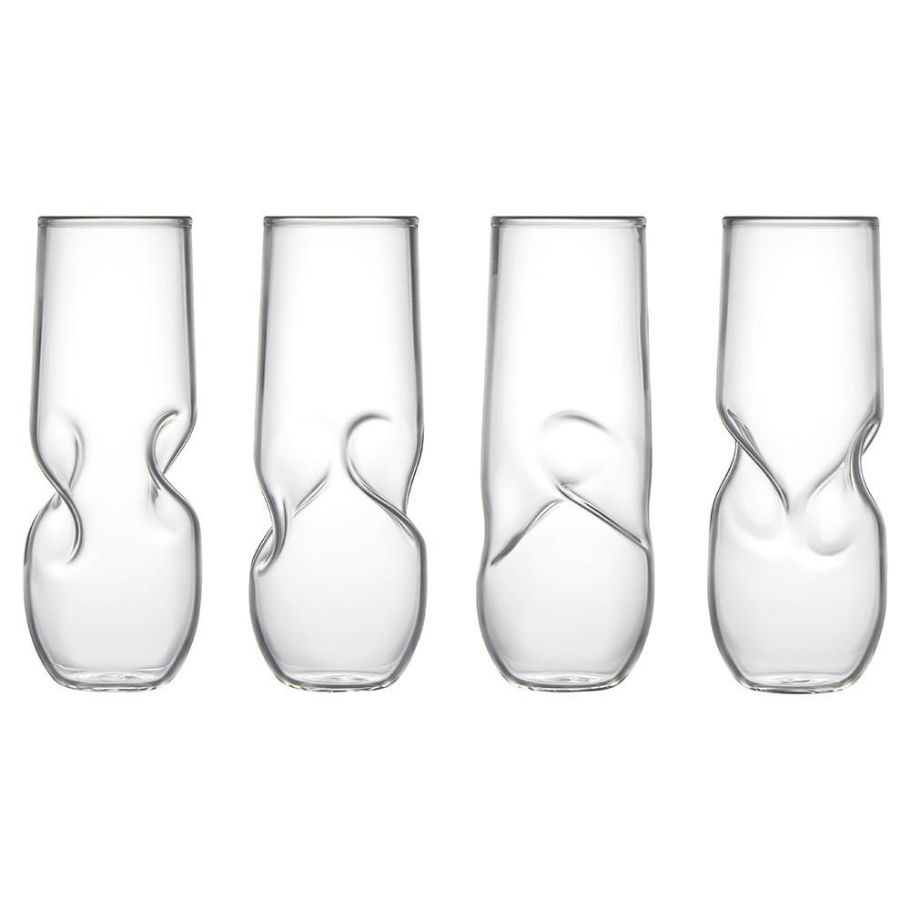 Два изящных бокала объёмом 260 мл поражают необычной формой — их поверхность слегка изогнута, создавая не только эффектный визуальный акцент, но и особое удобство: пальцы словно попадают в естественные пазы, благодаря чему бокал идеально ложится в руку.
