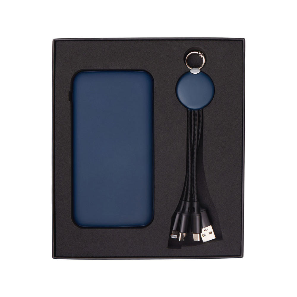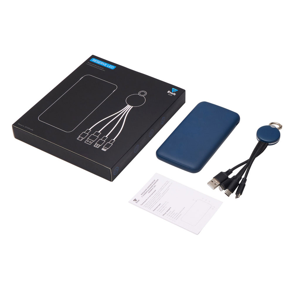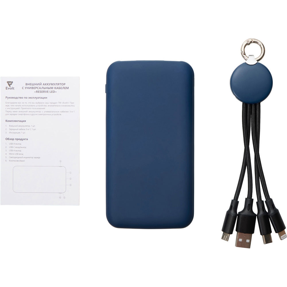 Набор из внешнего акуумулятора и универсального кабеля с подсветкой лого Reserve LED, 10000mAh, темно-синий