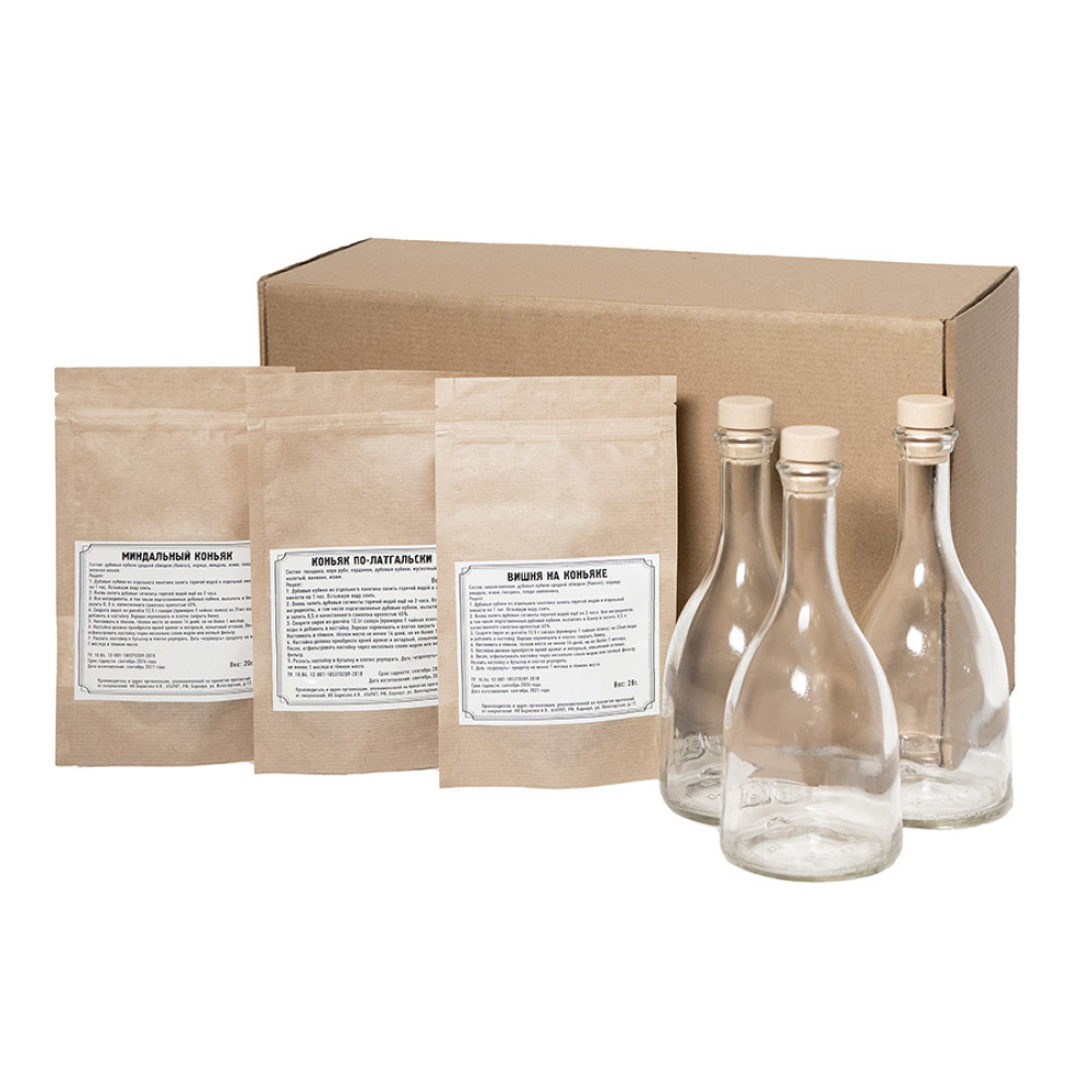Набор Сам себе сомелье для приготовления авторских напитков Коньяк по-латгальски, Миндальный коньяк, Вишня на коньяке