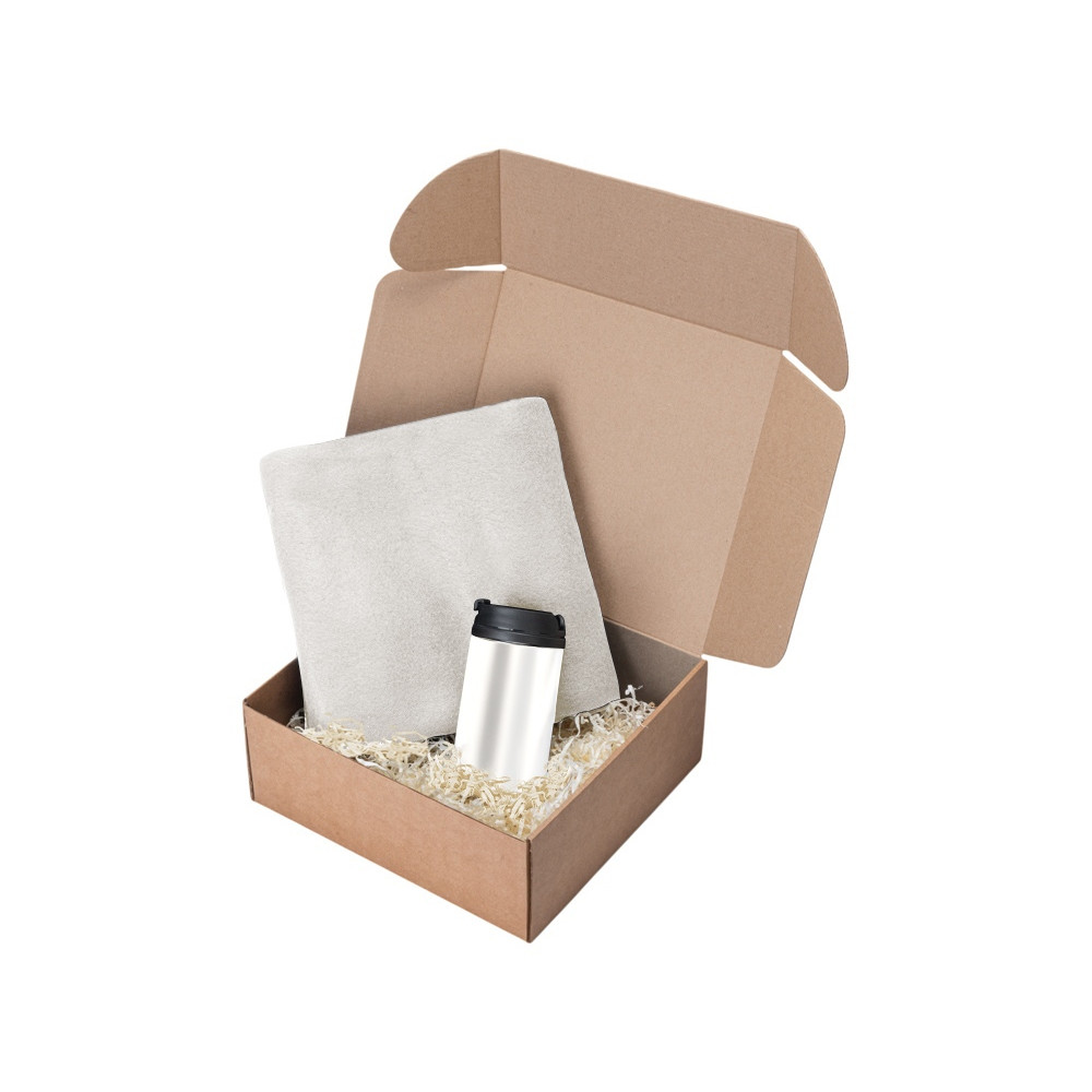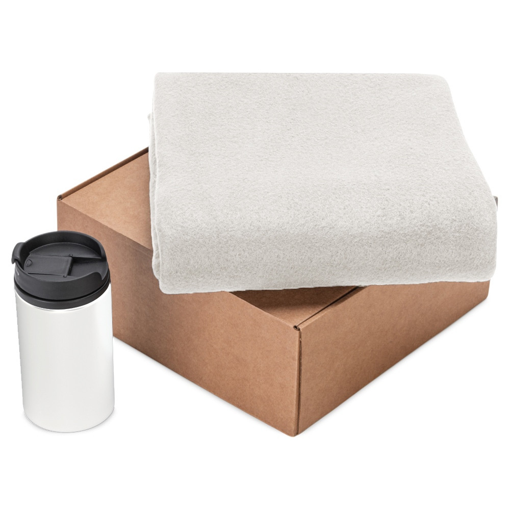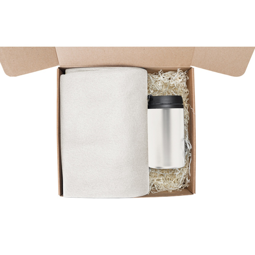Когда наступает холодная погода, самый оптимальный подарок - это набор плед и термокружка. Зимним вечером, обернувшись в плед дома или на работе, вы будете себя чувствовать в тепле и комфорте. А напиток в термокружке согреет вас, придаст сил и бодрости. Набор упакован в стильную крафтовую коробку.