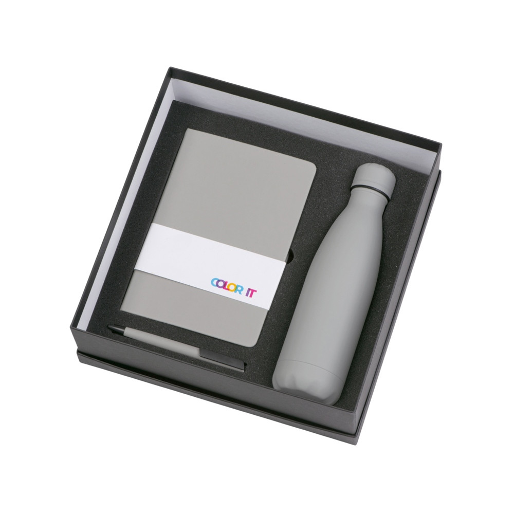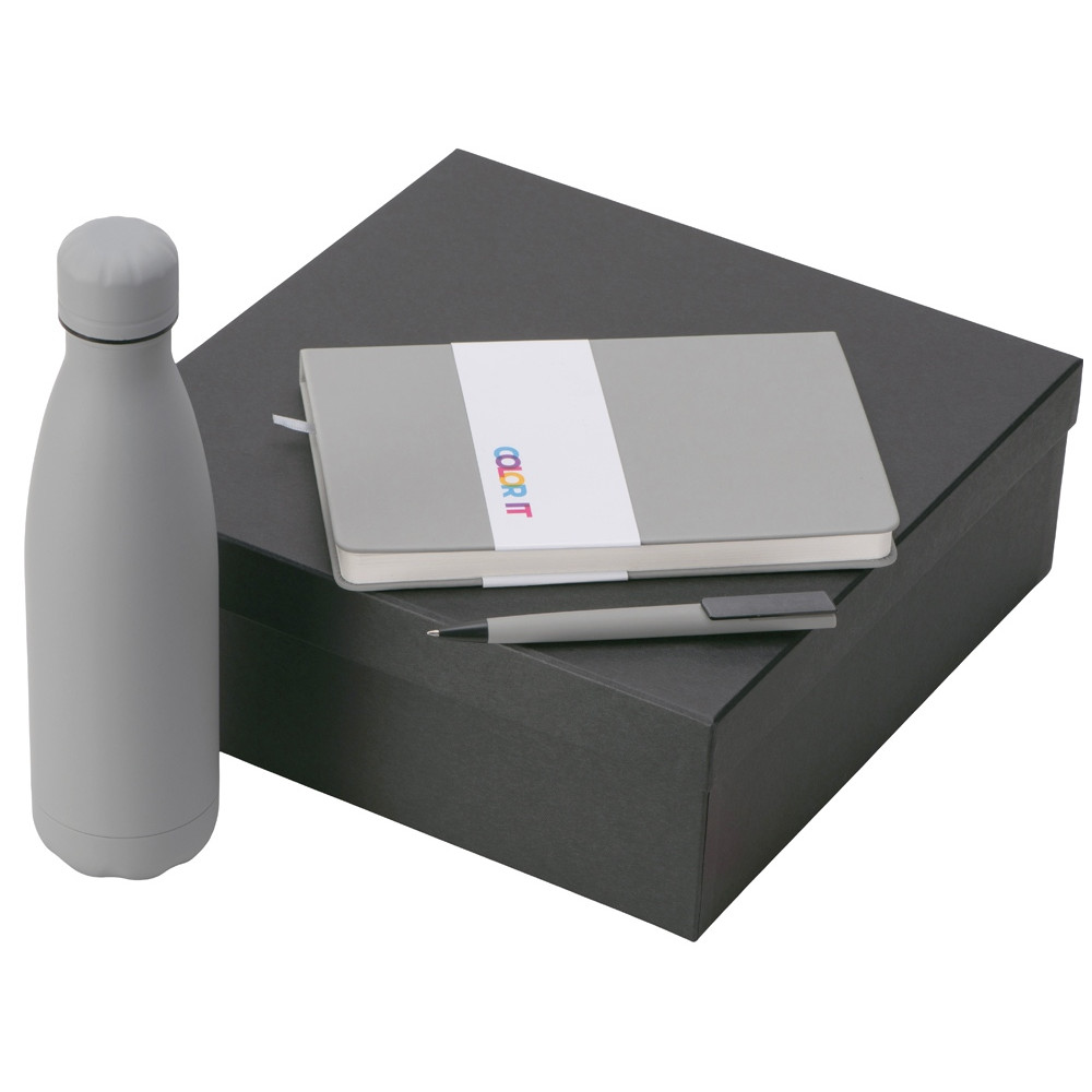 Подарочный набор c блокнотом C2, ручкой и термобутылкой, серый