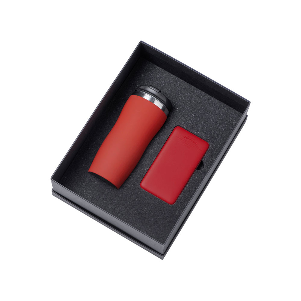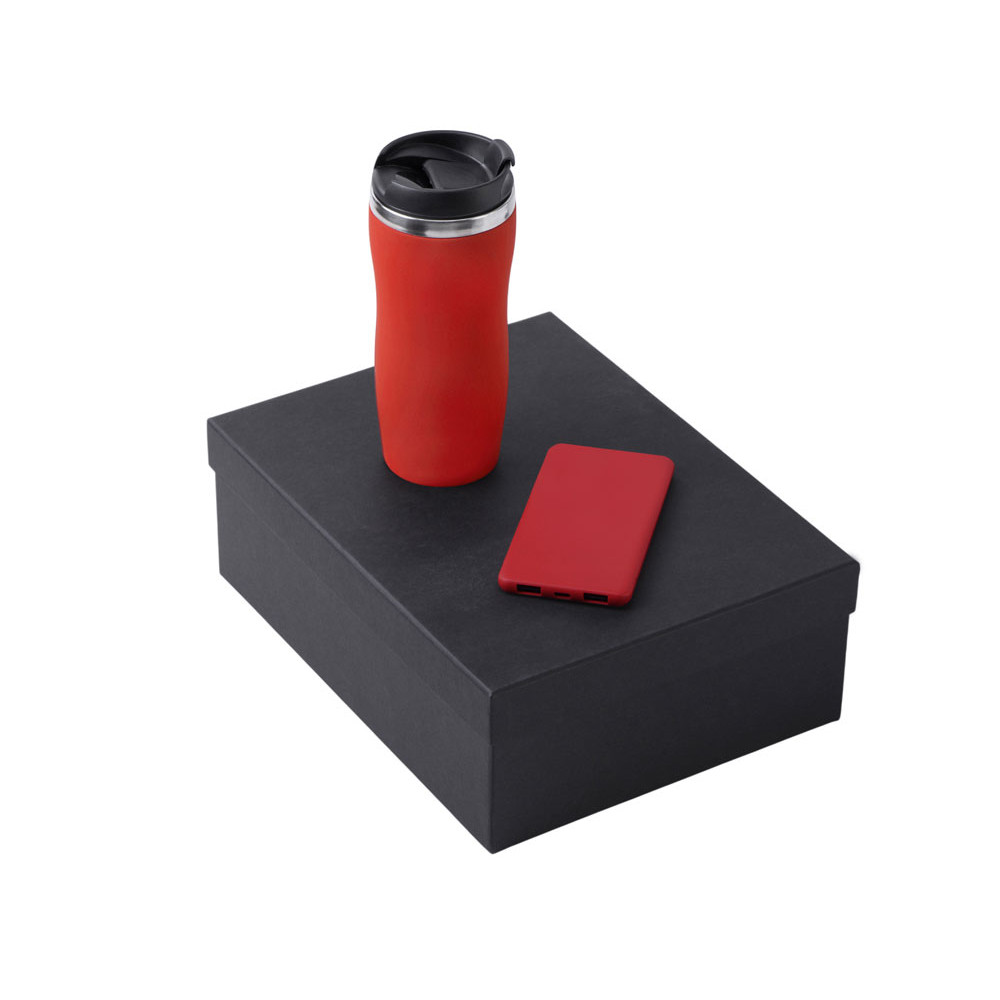 Подарочный набор c вакуумной термокружкой и повербанком С1, красный