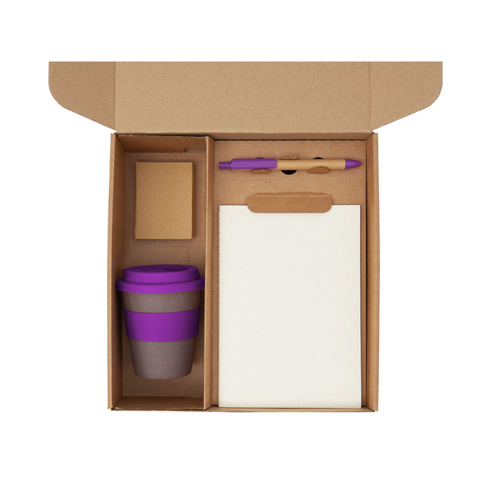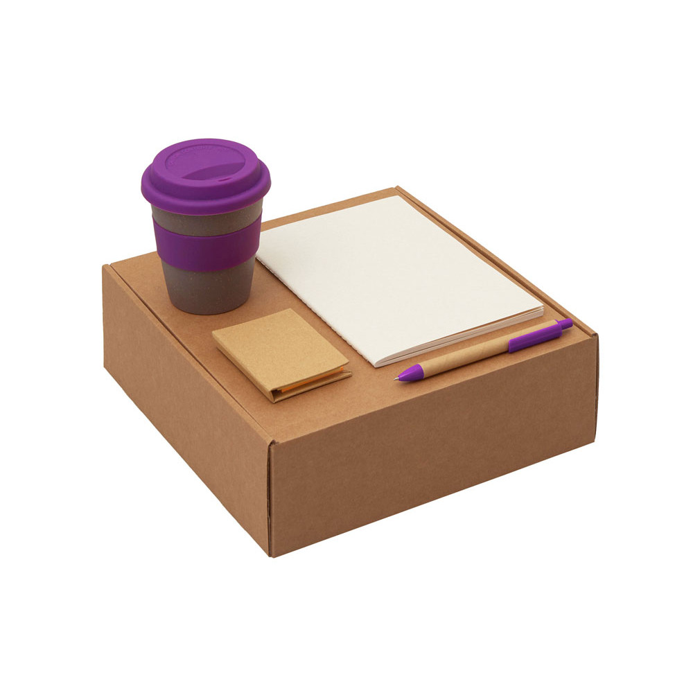 | Материал товара | блокнот- бумага из переработанных тетра-паков, ручка- картон, пластик, стакан- 50% бамбуковое волокно, 50% полипропилен, коробка- картон |