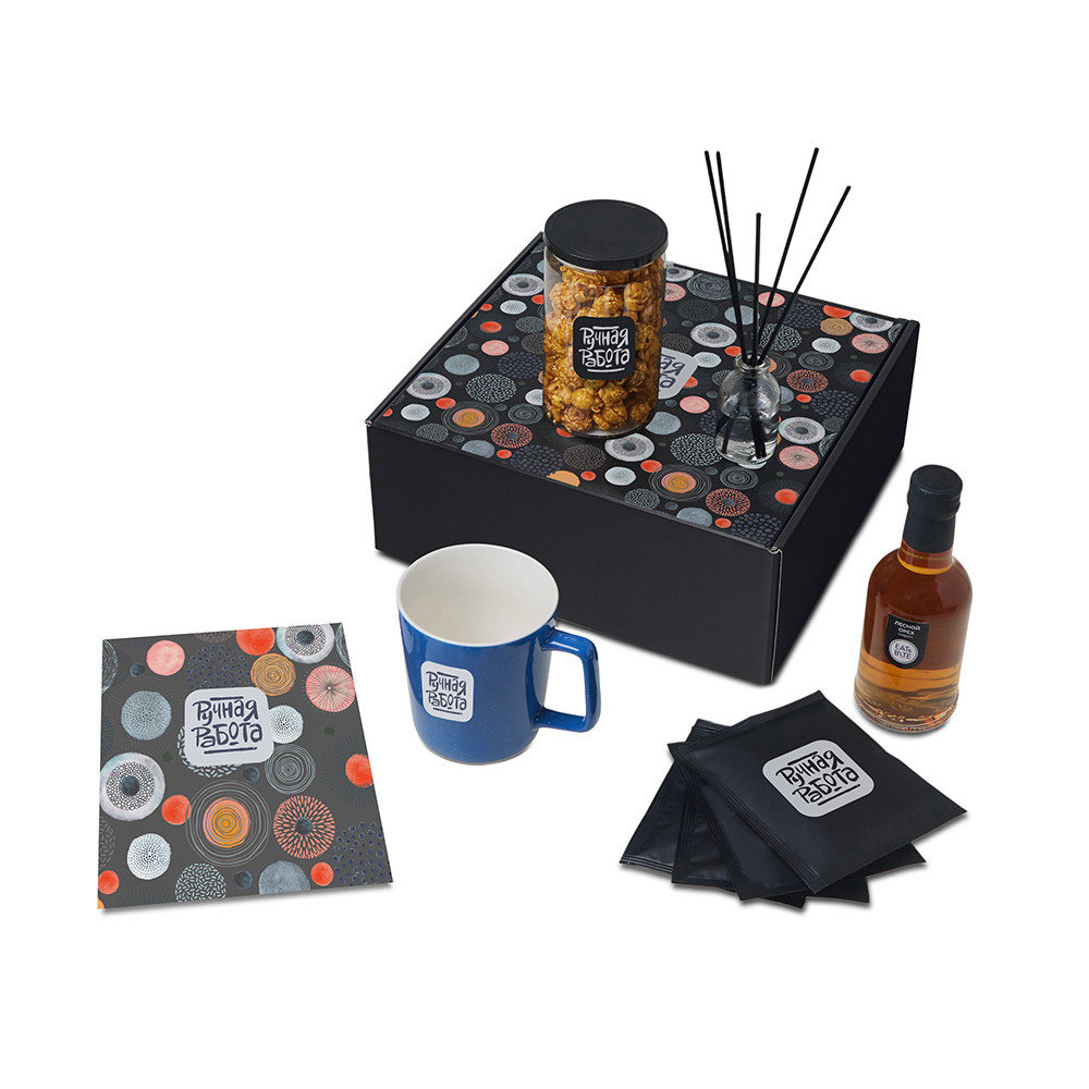 | Материал товара | диффузор - стекло, кофе в дрип пакете - пластик, кружка - костяной фарфор, попкорн - пластик, металл, мешок - нетканый материал (спанбонд), коробка - картон |