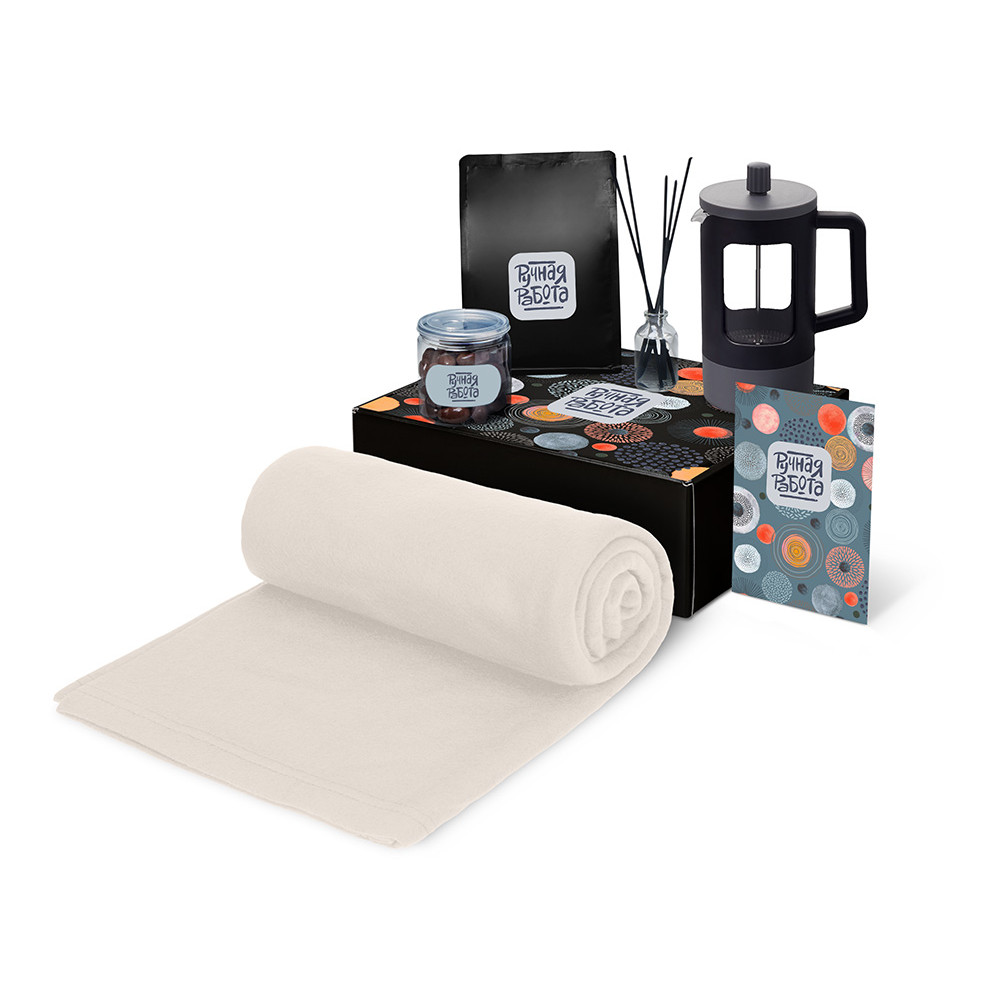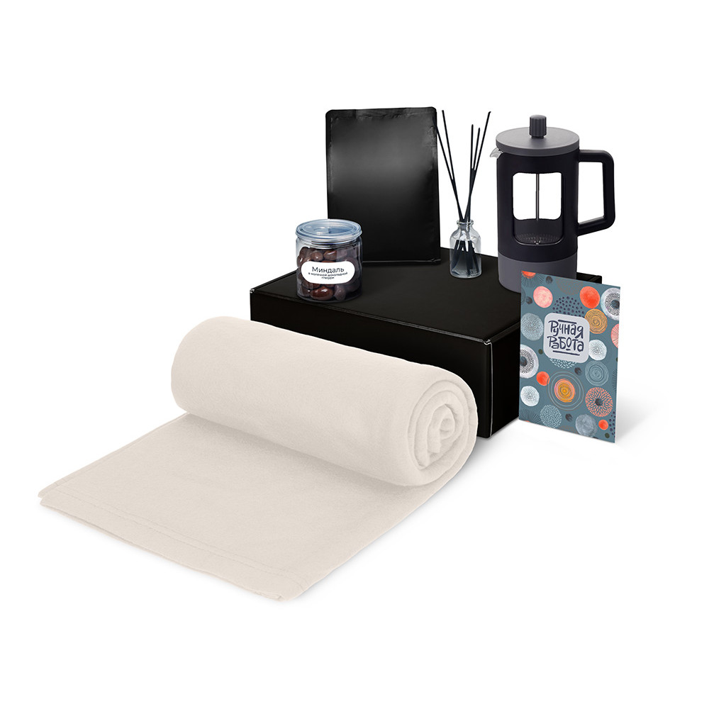 | Материал товара | плед - флис, полиэстер, кофе - пластик, френч-пресс - нержавеющая сталь, боросиликатное стекло, ПП пластик, диффузор - стекло, миндаль - пластик, мешок - нетканый материал (спанбонд), коробка - картон |