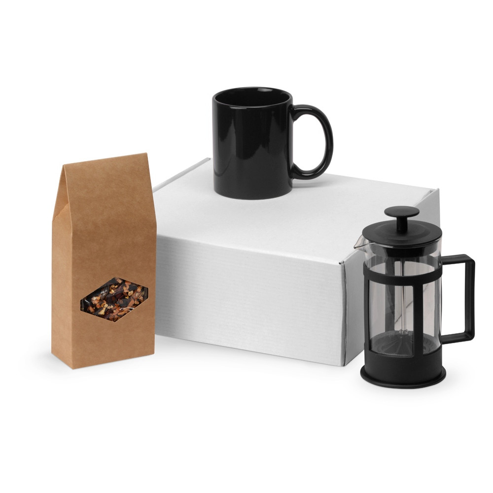 Подарочный набор с чаем, кружкой и френч-прессом Чаепитие, черный