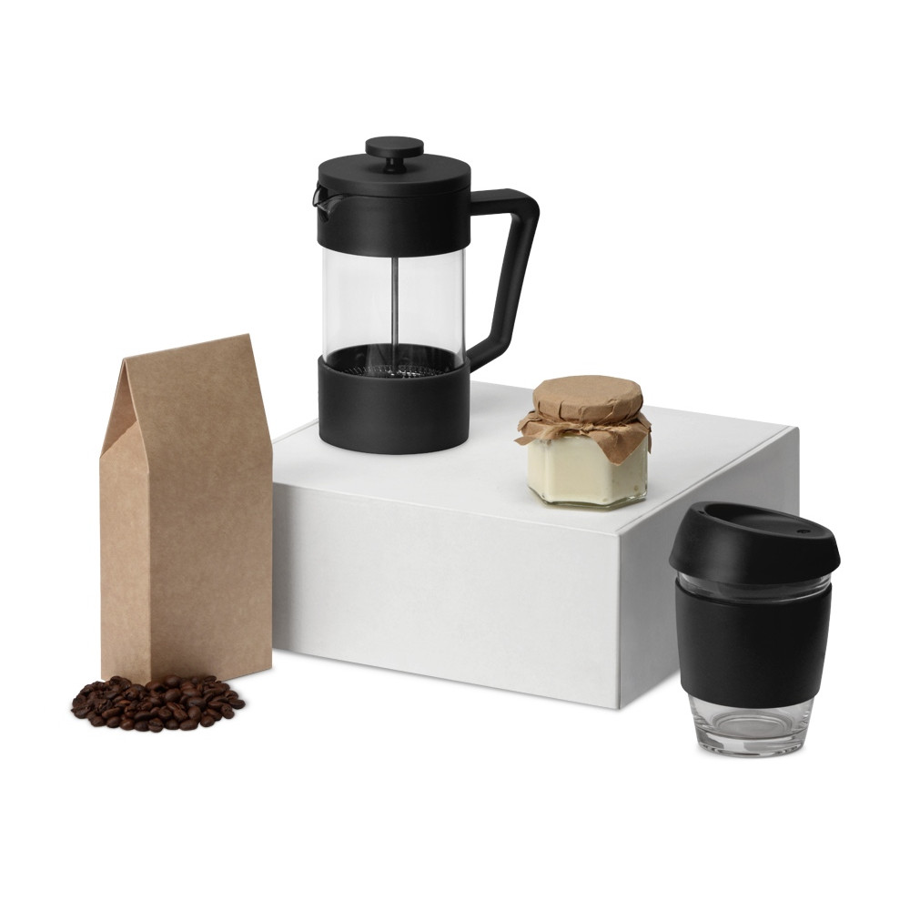 Подарочный набор с кофе, кружкой и френч-прессом Бодрое утро, черный