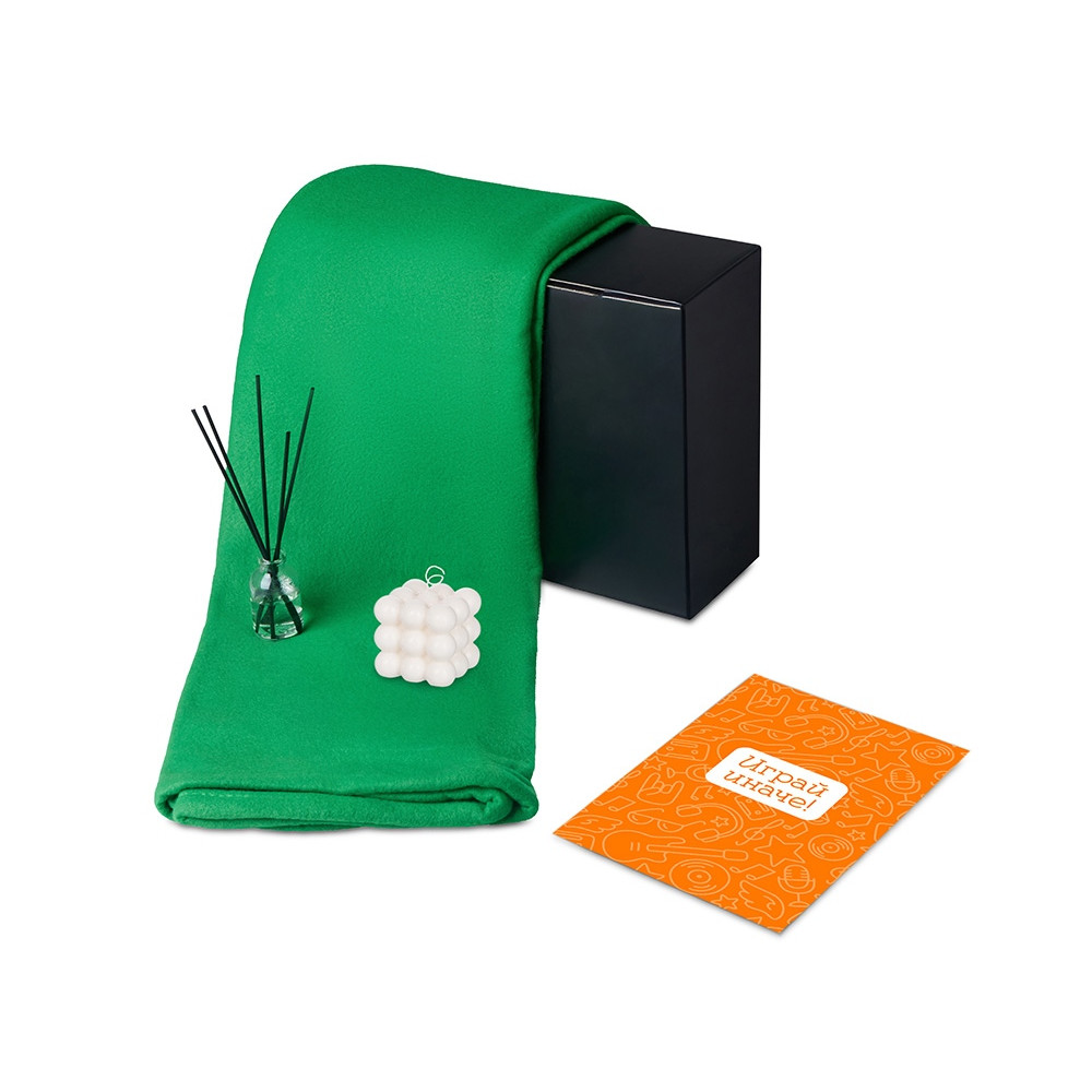 Подарочный набор с пледом, свечой и диффузором, зеленый