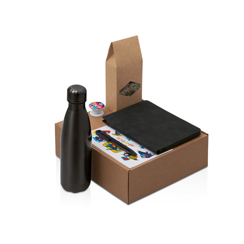 | Материал товара | бутылка - нержавеющая сталь, ручка - металл, пластик, блокнот- полиуретан, FSC бумага, держатель для телефона - пластик, чай - крафт-пакет, коробка - картон |