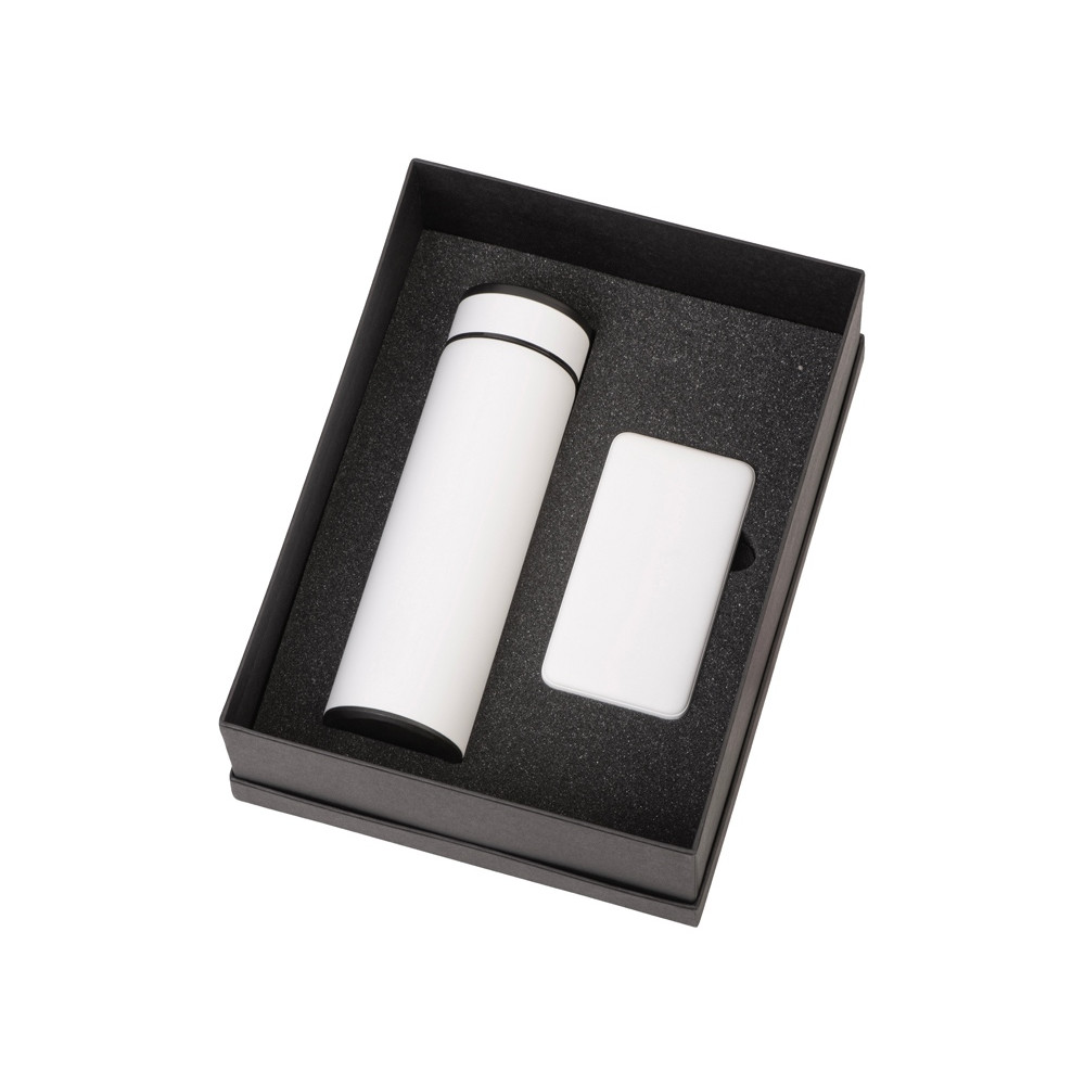 | Материал товара | термос - нержавеющая cталь с покрытием софт-тач, внешний аккумулятор- пластик с покрытием софт-тач |