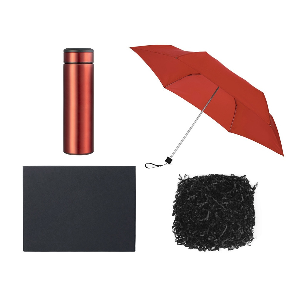 Подарочный набор с зонтом и термосом, красный
