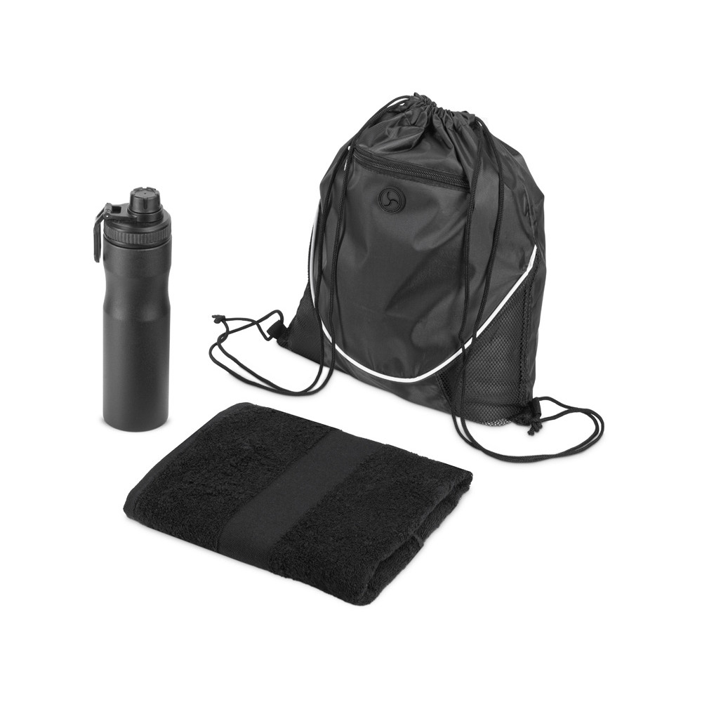 Спортивный набор со стальной бутылкой и полотенцем Advanced, черный