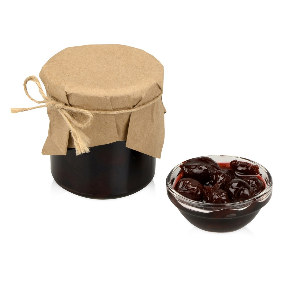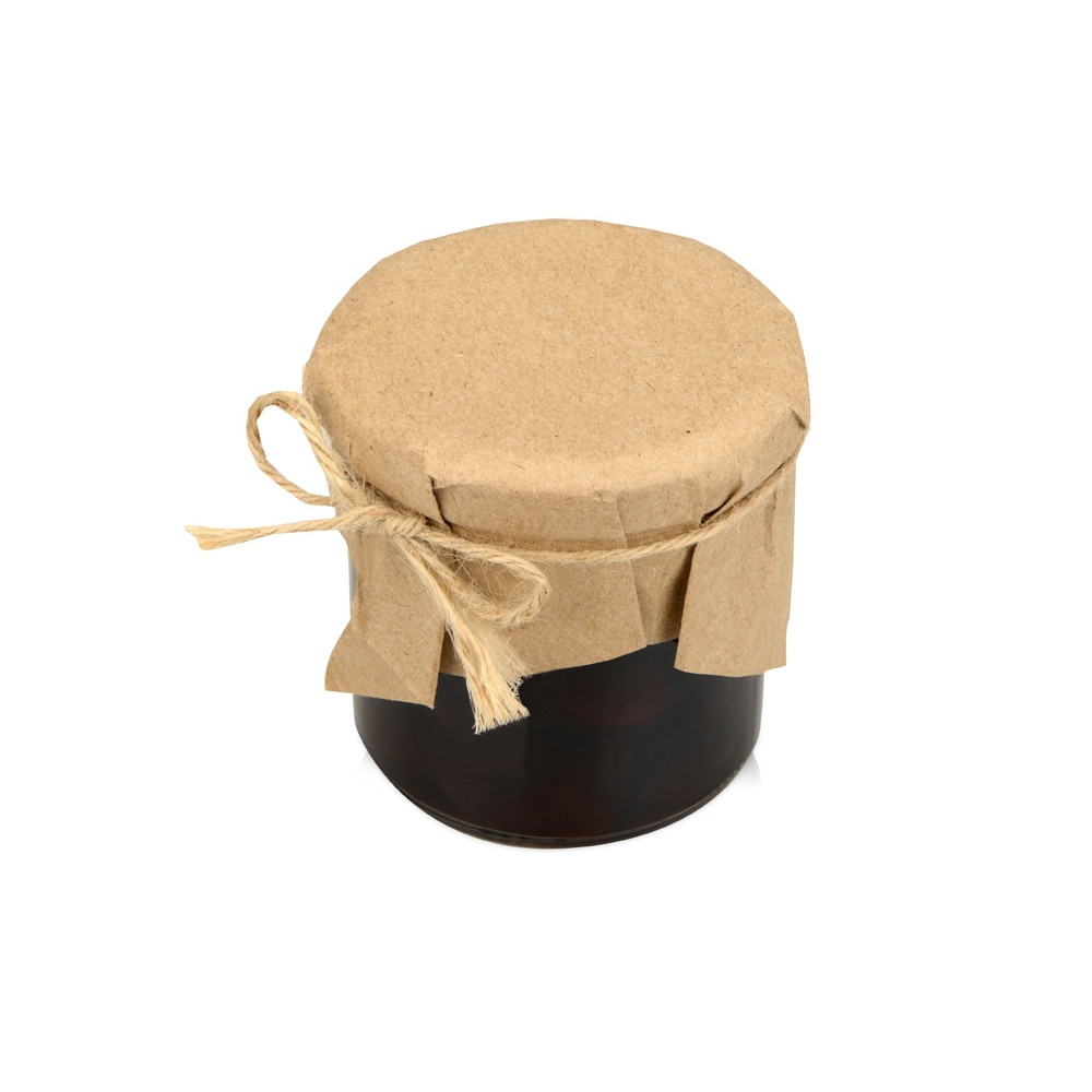 Банка варенья обернута крафт-бумагой, на которую возможно сделать нанесение корпоративного логотипа.