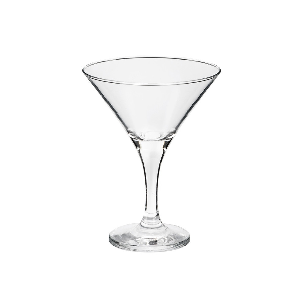 Классический конусовидный бокал для мартини из минерального стекла для вашего бара или ресторана. Форма этого бокала специально сконструирована таким образом, чтобы пальцы не согревали содержимое, ведь мартини и другие охлажденные коктейли, подаваемые в нем, сервируются безо льда.