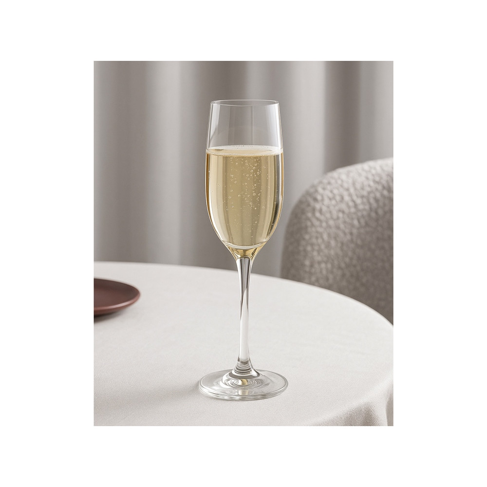 Классический бокал для шампанского выполнен из минерального стекла. Его легко мыть, он впишется в любой интерьер и сервировку, а также может стать частью вашего бара или ресторана. Форма этого бокала также называется флют — она специально рассчитана для игристых вин, не давая аромату слишком быстро улетучиваться вместе с пузырьками.
