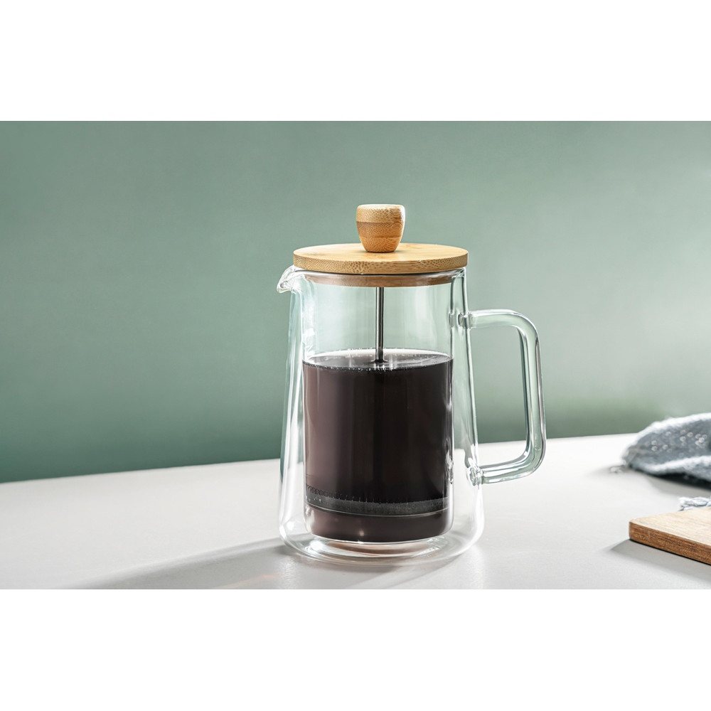 Френч-пресс с двойными стенками не только удобно использовать, но и приятно держать в руках. Он станет стильным элементом вашей кухни и подарит незабываемый вкус свежезаваренного напитка каждый день!