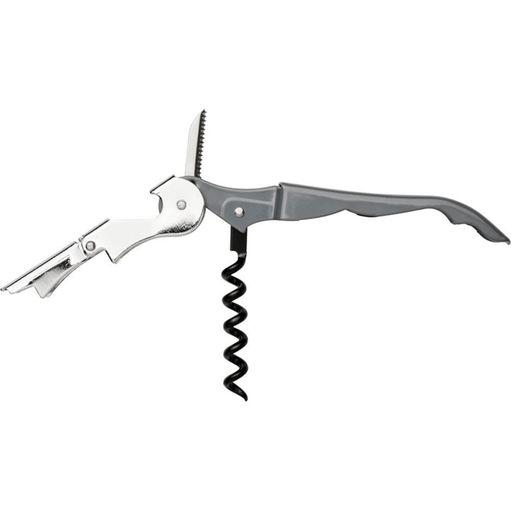 Штопор с буравчиком, открывалкой для бутылок и ножом для срезания фольги. Нержавеющая сталь.