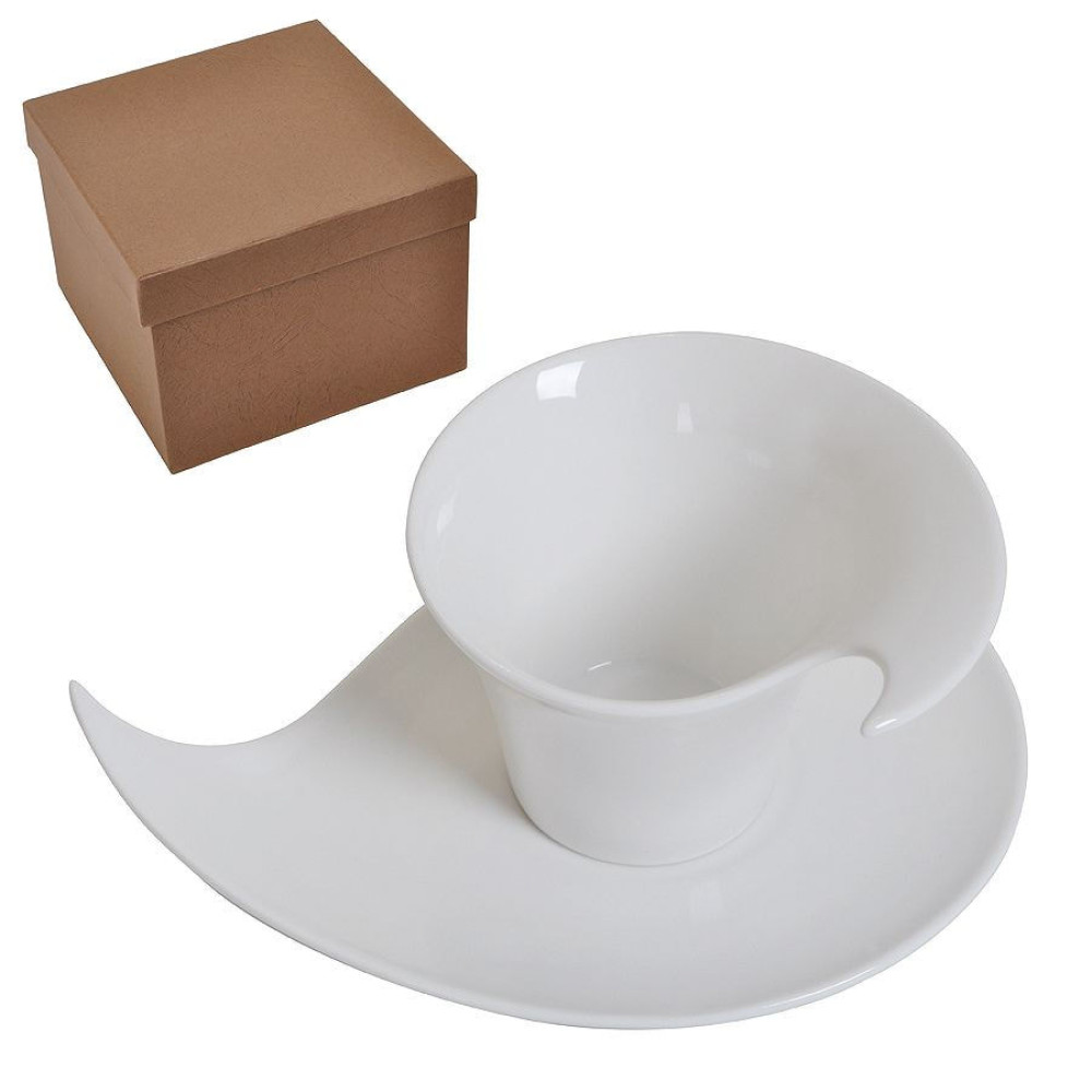 Фарфоровый подарок для истинных эстетов! Такой оригинальный презент обязательно бы оценил Сальвадор Дали. Что это? Иллюзия? Бег времени? Полет мысли? Рождение идеи? Ответ у каждого свой! Необычная форма чашки повторяется в такой же форме блюдца: как будто при перемешивании чайной ложечкой закручивается вихрь вкуснейшего чая или кофе. Отлично подойдет для брендов, только ворвавшихся на рынок; авторских кафе и арт-пространств; выставок; и для всех, кто готов мыслить нестандартно, ломать стереотипы, отрицать шаблоны и диктовать свои правила! Поставляется в подарочной коробке коричневого цвета!