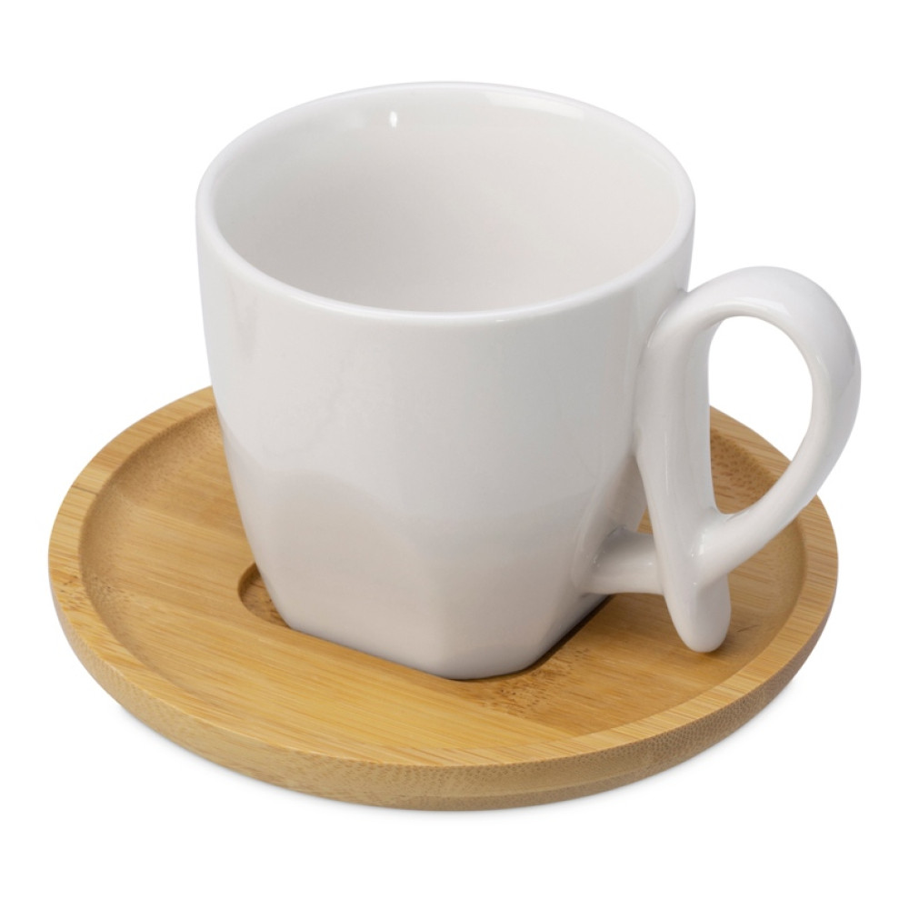 Кофейная пара с бамбуковым блюдцем Mandy, белый