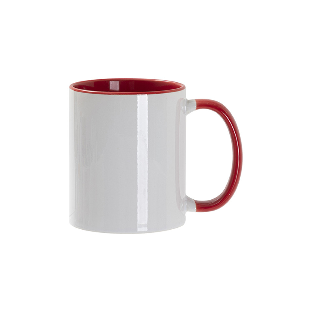 Кружка для сублимации, 330 мл, d=82 мм, стандарт А, белая, красная внутри, красная ручка
