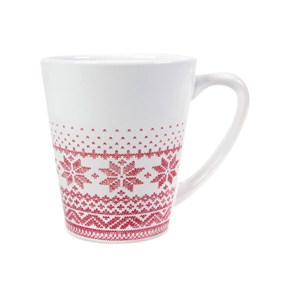 Кружка NUGLEX с теплым и уютным узором, совсем как на вязаном свитере, отлично подойдет для подарка в холодное время года. Красно-белый этнический рисунок превратит ее в стильный предмет интерьера или офисную вещицу, которая сделает утренний кофе еще вкуснее. А строгий, но четкий орнамент выгодно выделит кружку из числа других пестрых кружек коллег.
