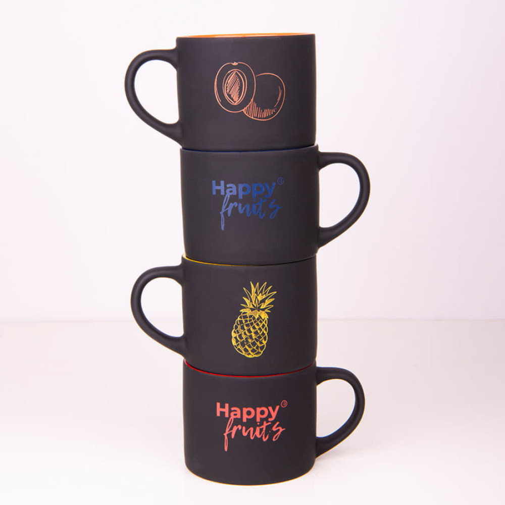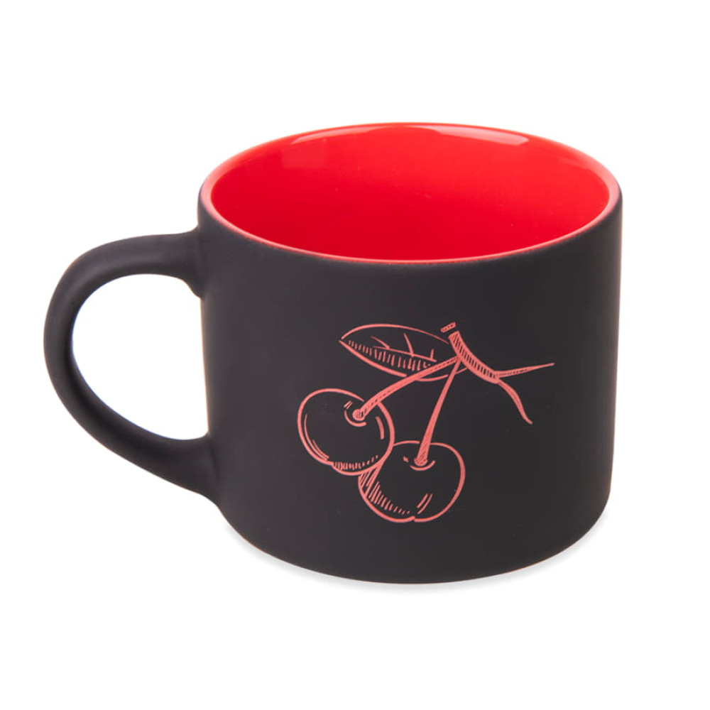 Кружка трендовой цилиндрической формы с черным прорезиненным покрытием.При гравировке подложка вскрывается в цвет внутренней части кружкиЦвет внутренней части близкий к Pantone 199C
