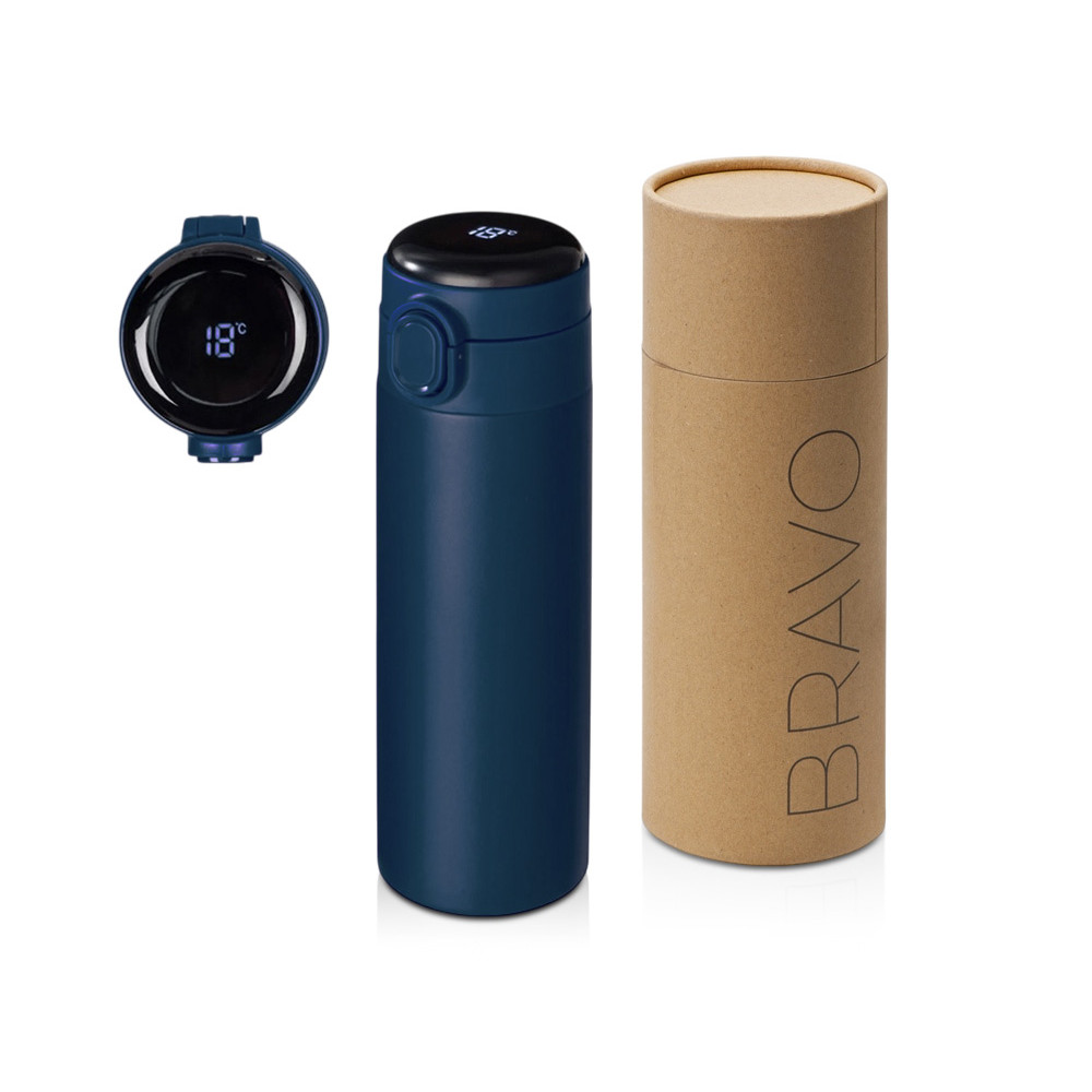 Вакуумная термокружка с медной изоляцией между стенками, которая точно не даст вам обжечься: сенсорный индикатор температуры сообщает о температуре напитка, выводя на дисплей информацию в градусах Цельсия. Что немаловажно, сенсор работает от сменной батарейки, что существенно продлит срок службы Bravo, позволяя не расставаться с полюбившейся термокружкой.
