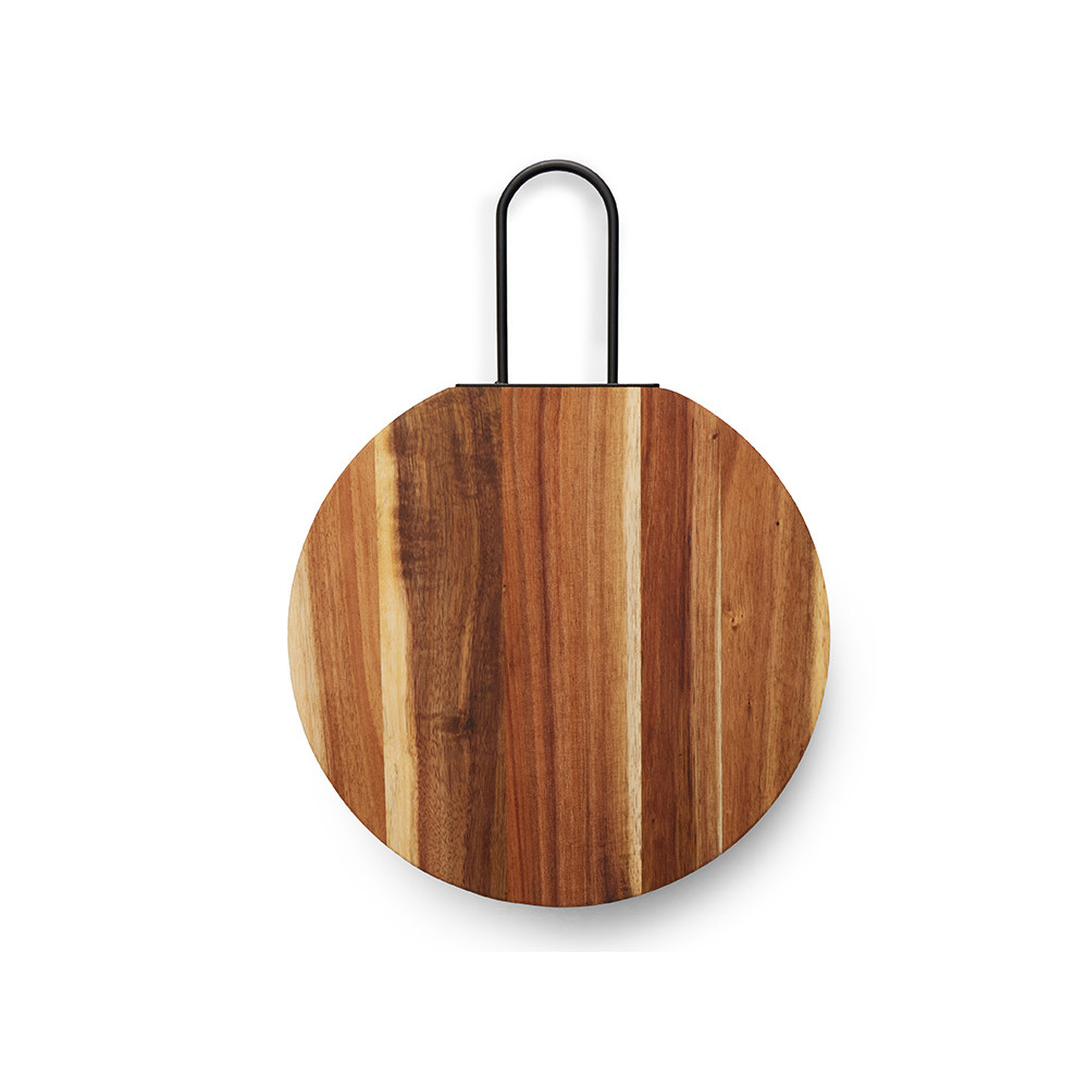 Деревянная круглая доска из акации с металлической ручкой Кира