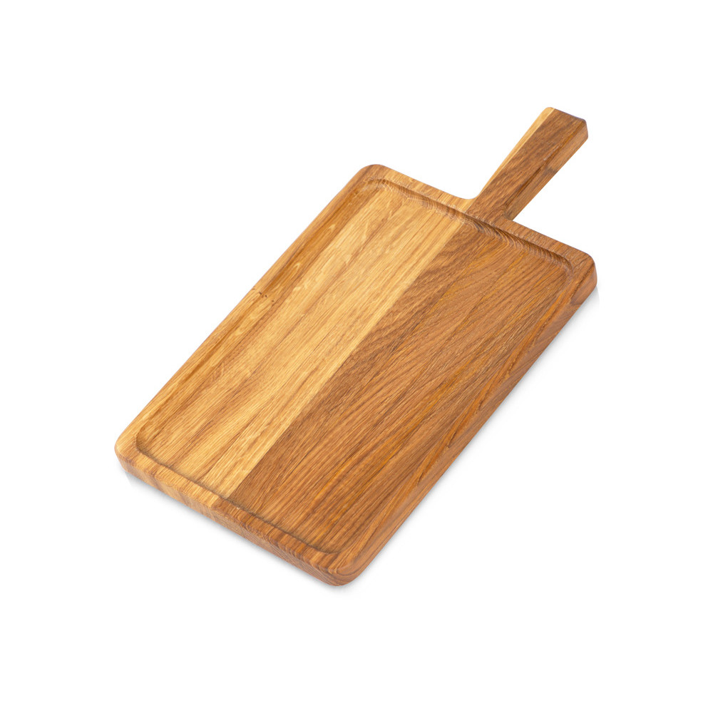 Доска-поднос Slice от Eat&Bite изготовлена из натурального дуба. Чтобы дерево не портилось от влаги, но при этом оставалось безопасным в использовании, доска покрыта пищевым маслом.