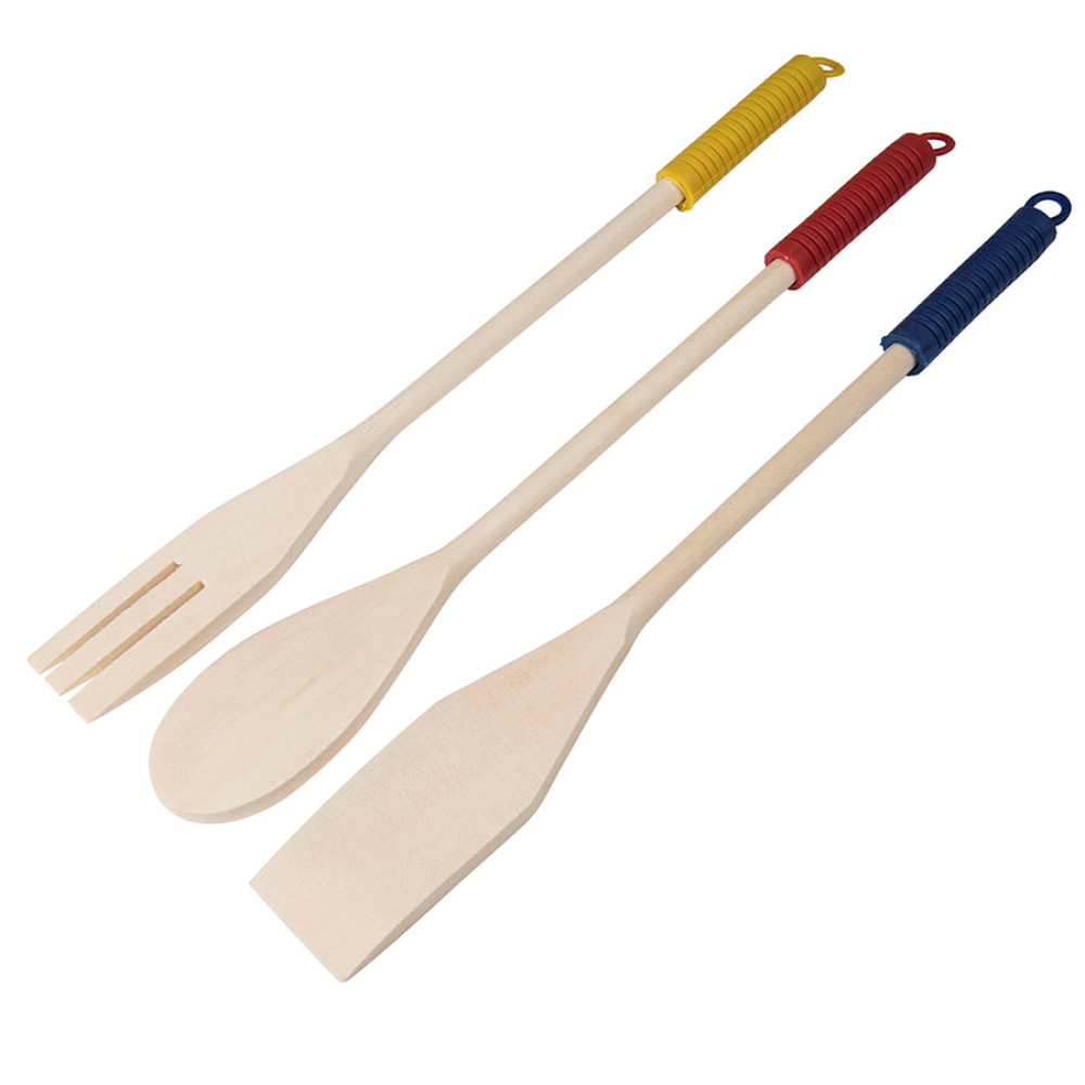 Набор деревянных лопаток KUSINA из клена станет незаменимым помощником на кухне. Посуда с антипригарным покрытием чувствительна к металлическим аксессуарам, тогда как мягкое дерево нежно и аккуратно взаимодействует с поверхностью. Лопатки помогут перевернуть стейк, поправить кекс в форме и сделать много других полезных вещей. Цветные силиконовые наконечники с ребристой поверхностью и удобной петлей позволяют ручкам не скользить в ладони на жаркой кухне. Использование деревянных лопаток имеет целый ряд преимуществ: • исключается вероятность получить ожог: у дерева низкая проводимость тепла, и в отличие от металла оно не нагревается; • они не царапают посуду, ведь дерево податливый и мягкий материал, что дает возможность использовать его для готовки в кастрюлях и сковородках с антипригарным и тефлоновым покрытием; • в отличие от пластика и прочих материалов, натуральный массив не выделяет токсинов и не влияет на вкус блюд. Отличный авторский сет из удобных предметов для кулинарных открытий и экспериментов!