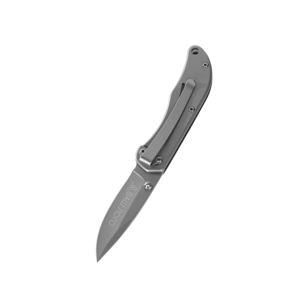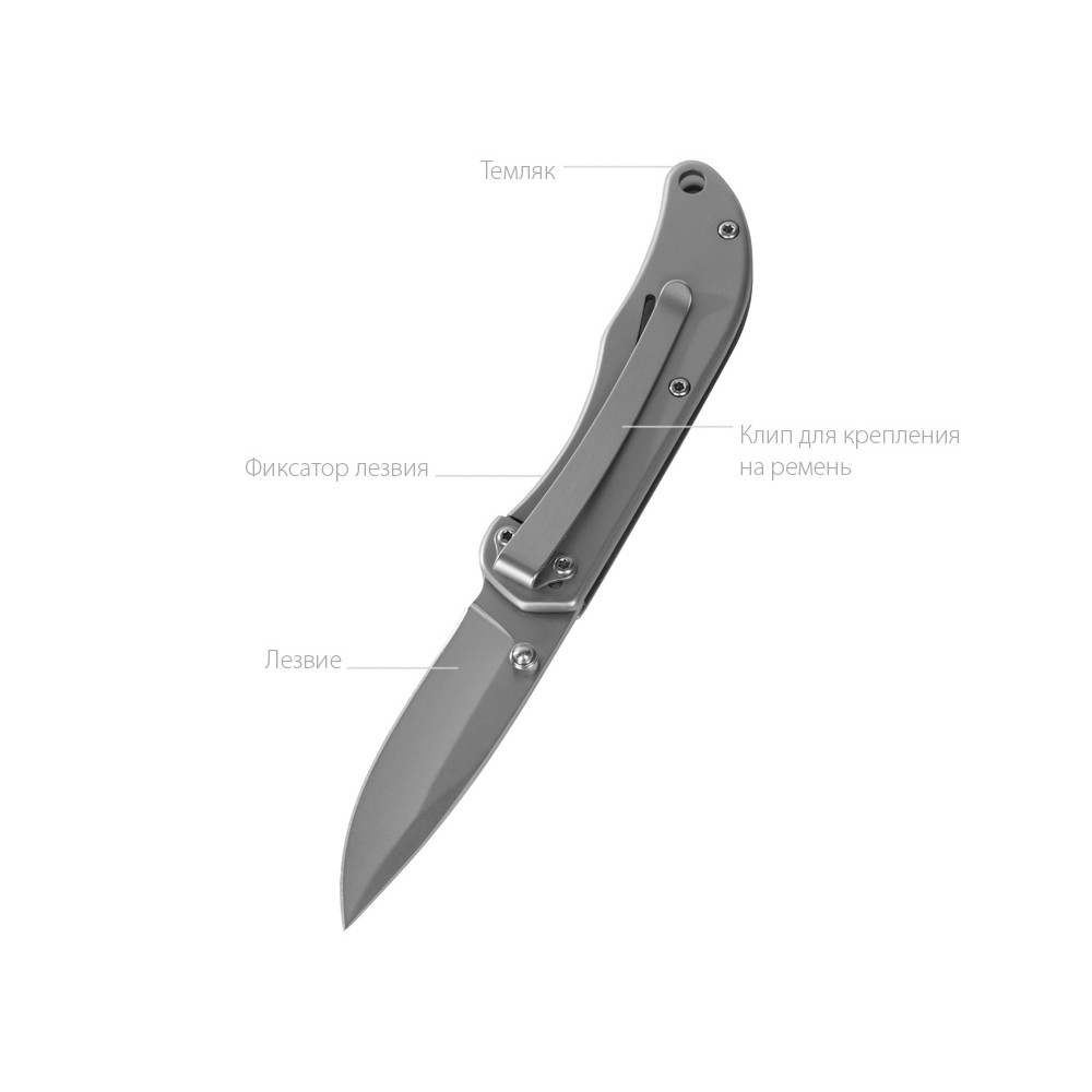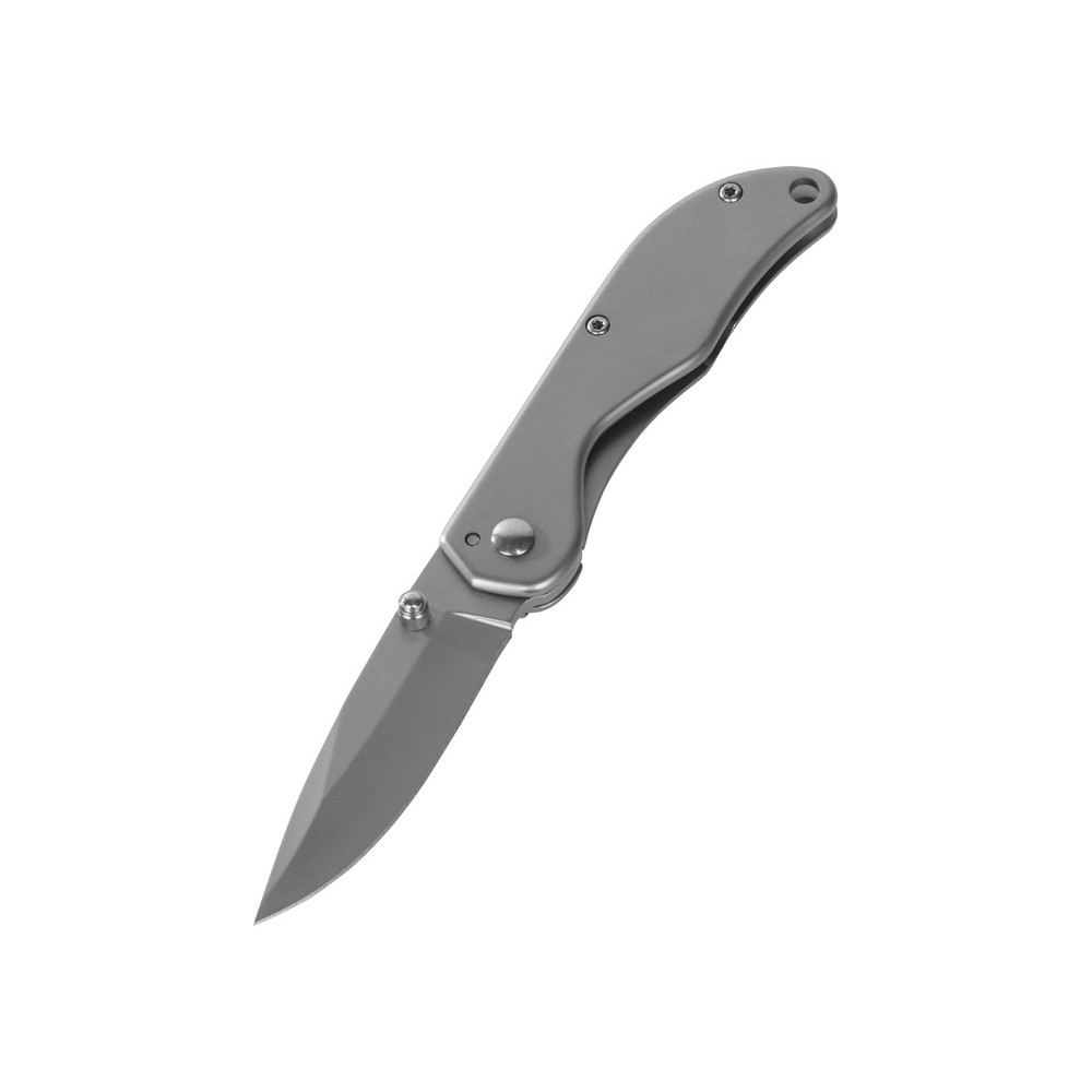 Складной нож бренда roq из нержавеющей высококачественной стали AISI 420. Матовый оттенок стали позволяет сделать заметное брендирование как на клинке, так и на рукояти.