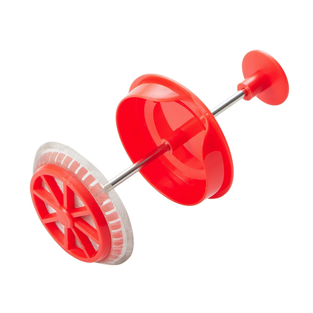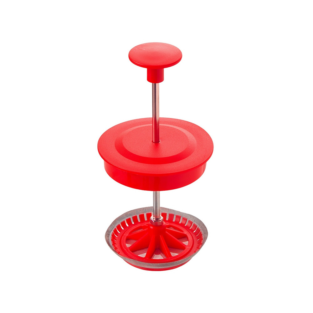 Этот кухонный прибор имеет плотно прилегающую пластиковую крышку, поршень из нержавеющей стали и пресс-фильтр с уплотнительным кольцом из пластика для отделения чайных листьев от воды.