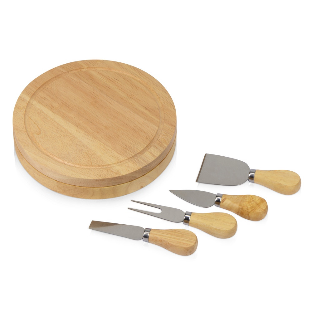 Подарочный набор для сыра в деревянной упаковке включает в себя три вида ножей и одну вилку. С помощью приборов можно нарезать сыры разных сортов. Набор упакован в деревянную подарочную коробку, которую можно использовать для хранения этих инструментов. Удобный поворотный механизм позволяет использовать крышку в качестве разделочной доски. Специальные выемки в коробке фиксируют приборы в безопасном положении.
