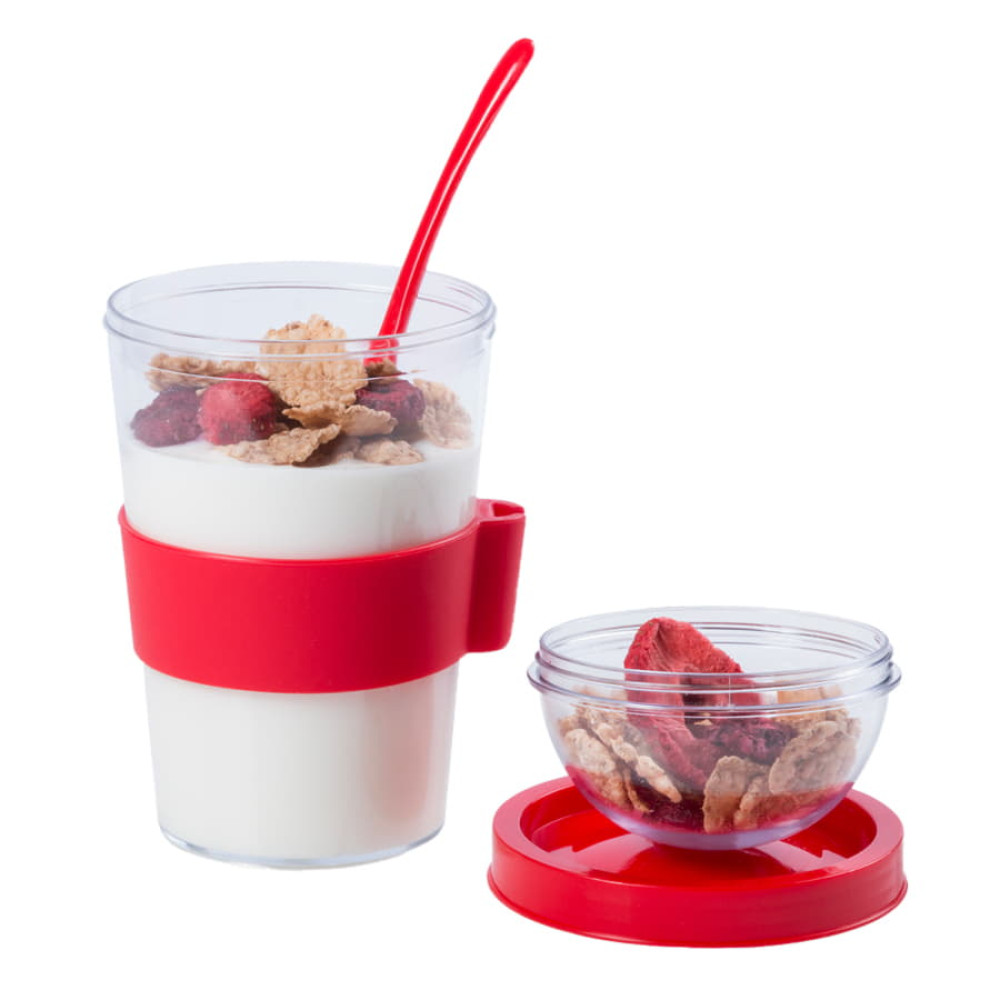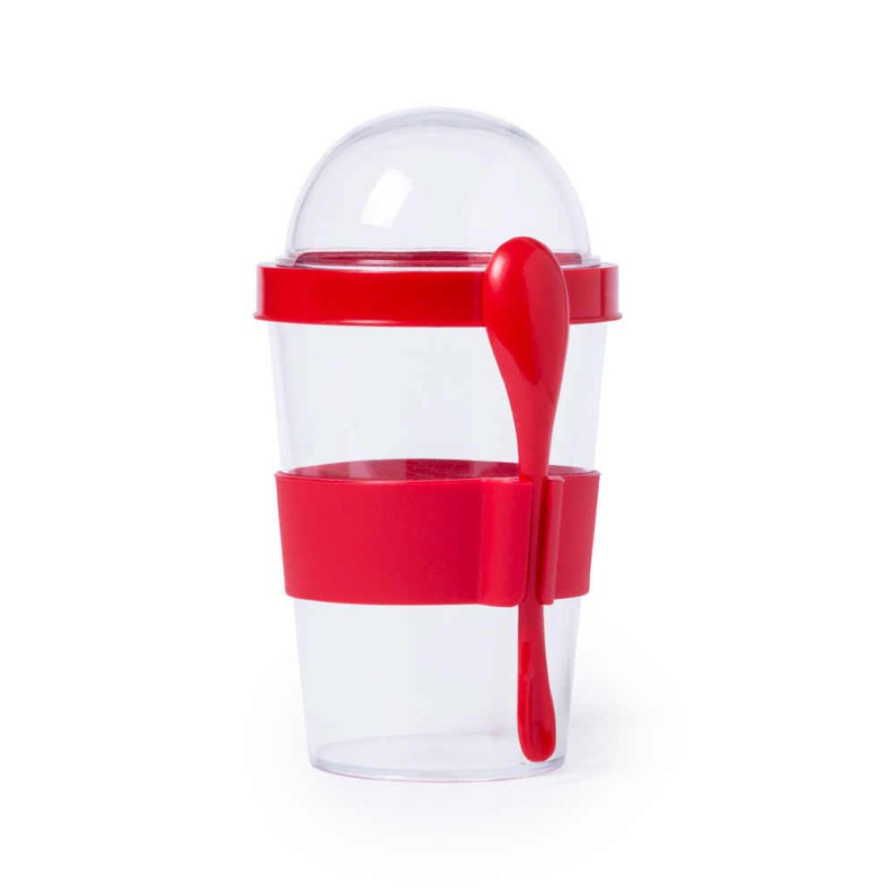 Контейнер для еды YOPLAT с ложкой, пластик, цвет красный