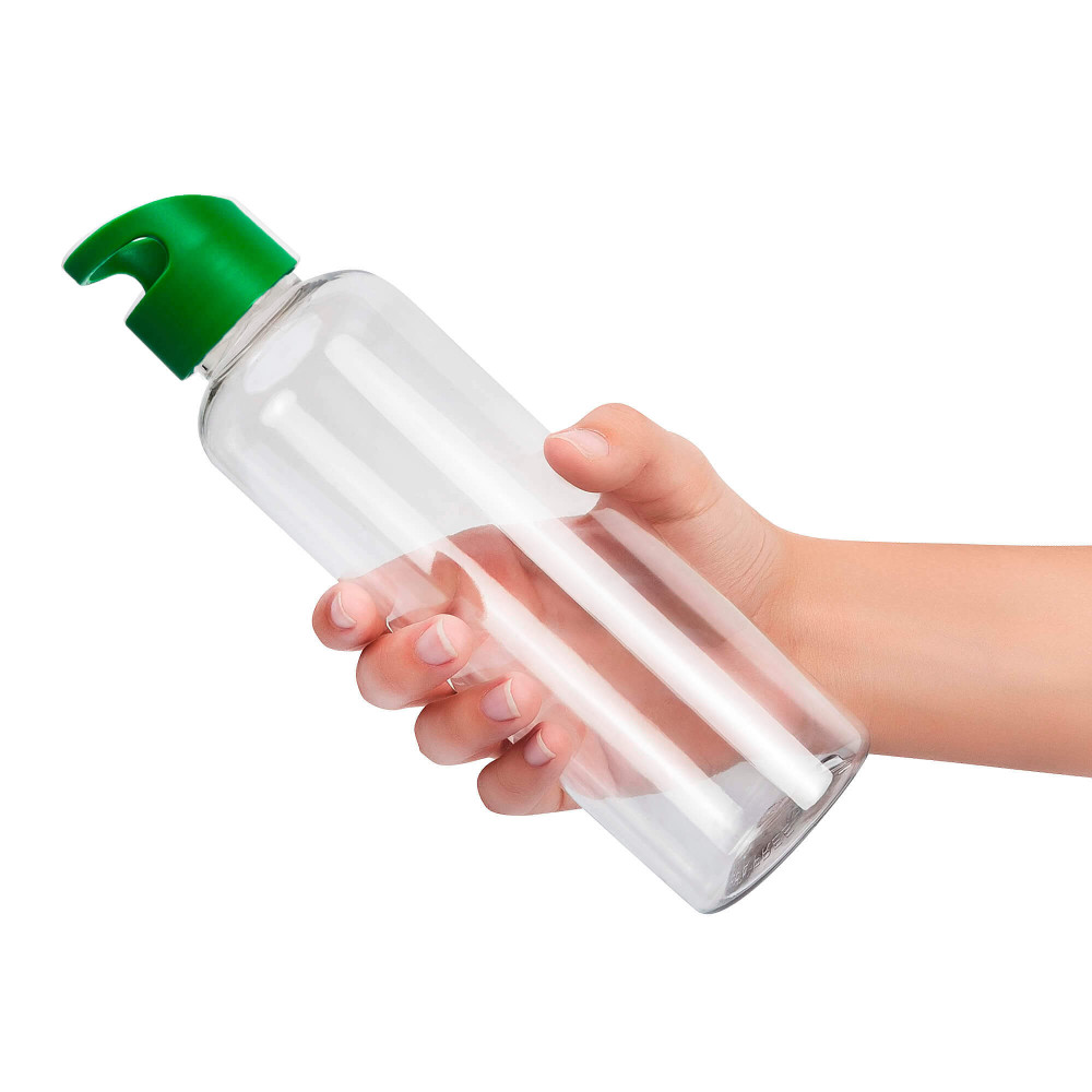 Корпус бутылки изготовлен из безопасного пищевого пластика PET. Мы не используем пластик rPET, который производится из вторсырья.На крышке бутылки имеется крепление, которое позволяет закрепить бутылку на рюкзаке или на поясе. Для напитков температурой не более 40°C