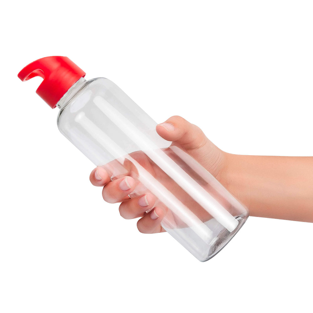 Корпус бутылки изготовлен из безопасного пищевого пластика PET. Мы не используем пластик rPET, который производится из вторсырья.На крышке бутылки имеется крепление, которое позволяет закрепить бутылку на рюкзаке или на поясе. Для напитков температурой не более 40°C