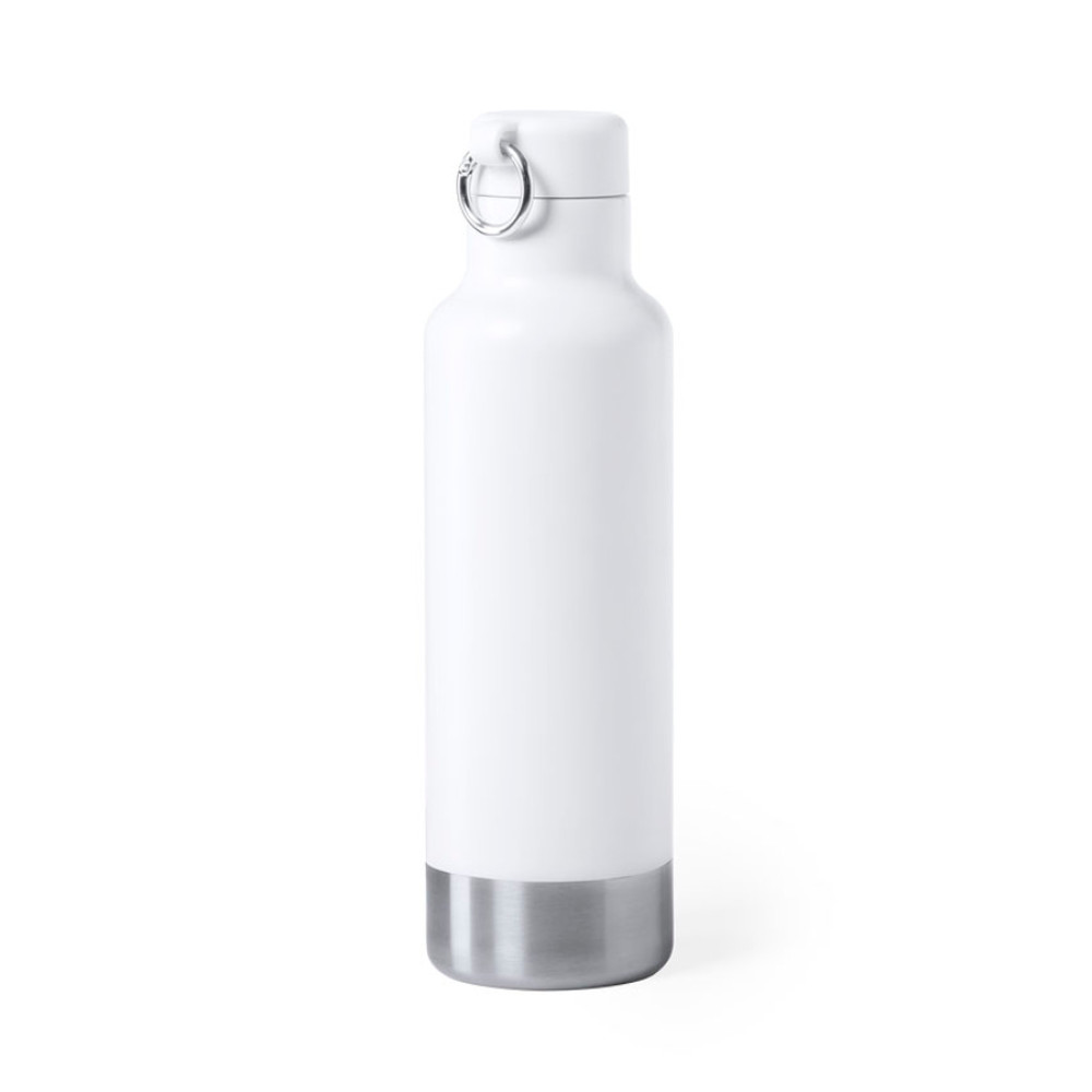 Бутылка для воды PERNAL высокого качества и большой емкости 750 мл из нержавеющей стали, со свинчивающейся крышкой и кольцом-карабином для переноски. Основание из элегантной нержавеющей стали. Доступна в элегантном белом и черном цветах. Представлена в индивидуальной коробке привлекательного дизайна. Диаметр бутылки - 7 см, вес - 150 г.