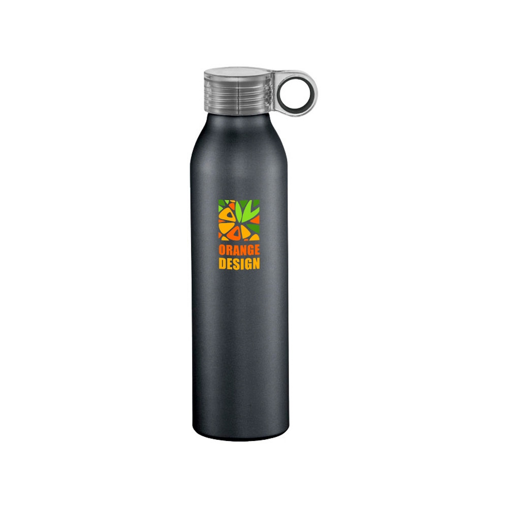 Спортивная алюминиевая бутылка Grom. Одинарные стенки. Откручивающаяся крышка с защитой от протекания и цветным акцентом. Удобная в пути. Объем 650 мл. Алюминий.