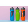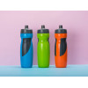 Бутылка для воды Flex - отличное решение для людей, которые любят активный отдых. Емкость для питья изготовлена из безопасного пищевого пластика (отсутствует Бисфенол А, который имеет вредное воздействие на здоровье). Жидкость не прольется, даже если бутылка будет находиться в перевернутом состоянии, а благодаря наличию вставок из термопластичной резины бутылку удобно держать в руке. Прекрасно подходит как для занятий спортом, так и для путешествий. Объем – 709 мл.