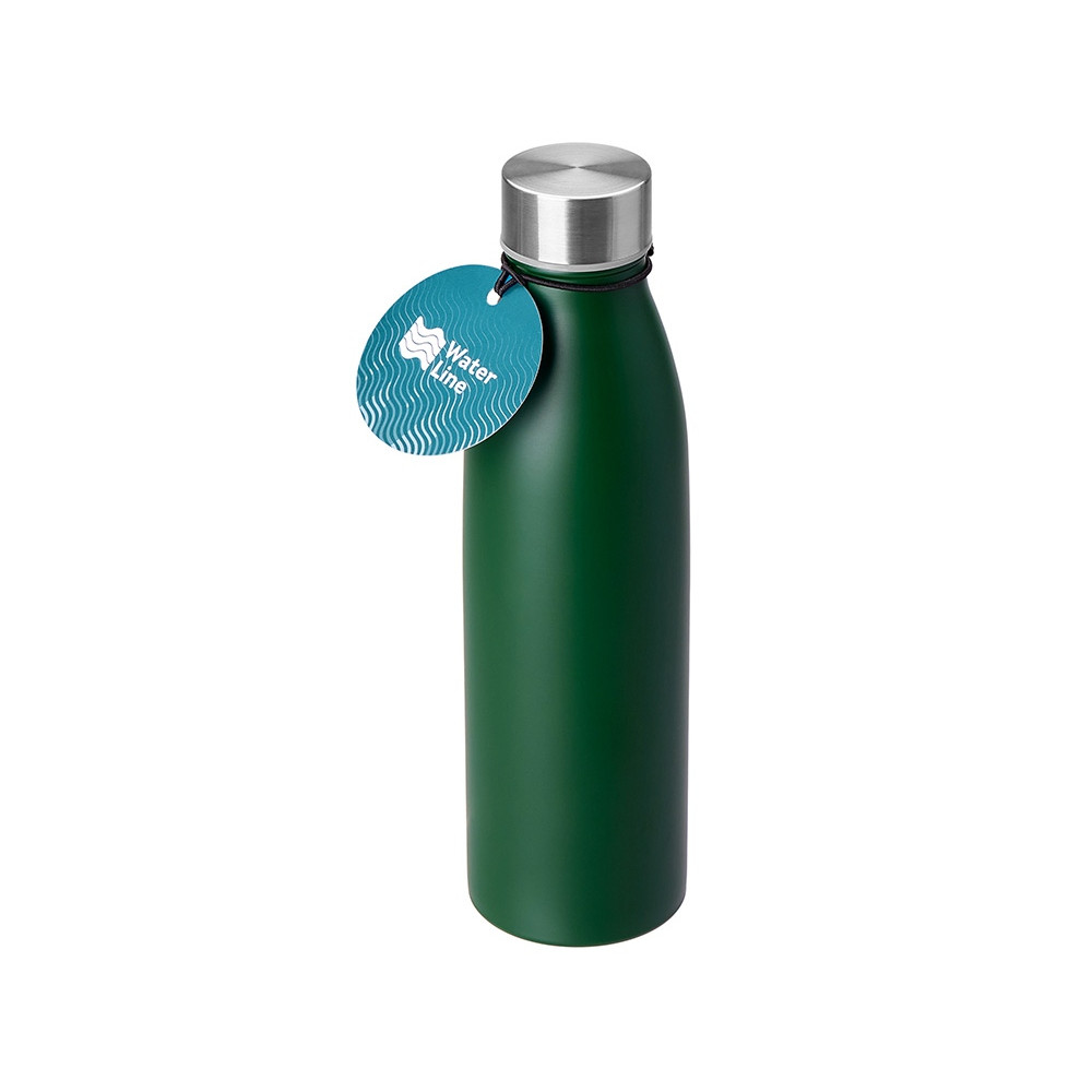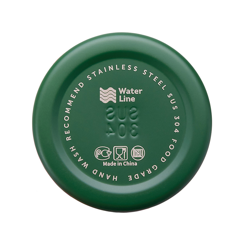Поверхность стальной бутылки для воды Rely бренда Waterline имеет матовую текстуру. Это делает Rely интересным продуктом для брендирования. Например, один из множества вариантов - гравировка на ровной поверхности крышки.