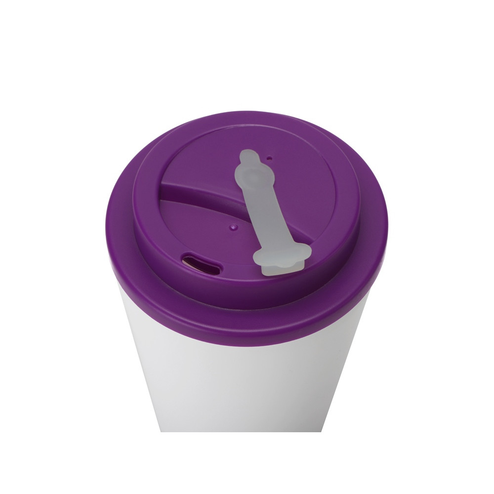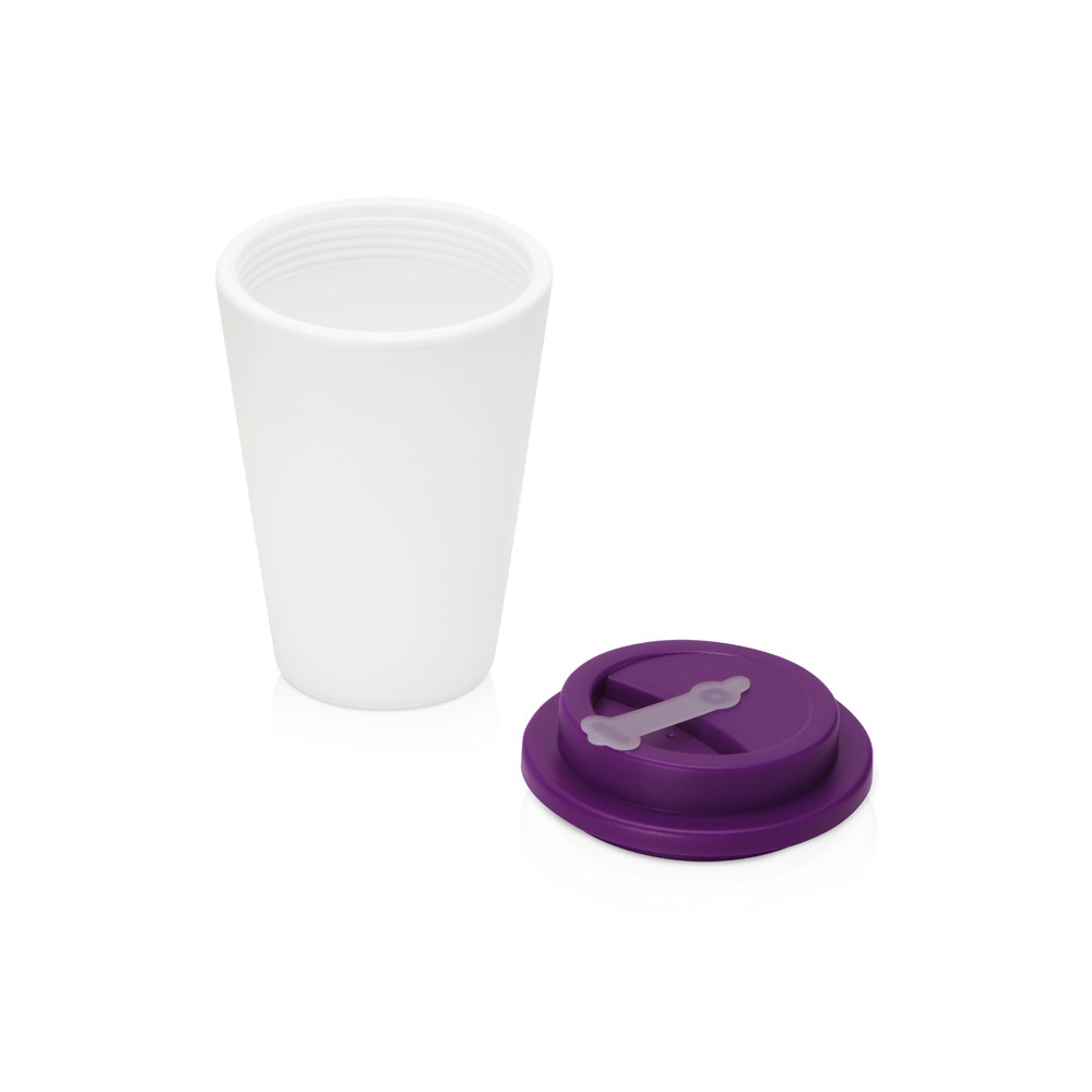 Пластиковый стакан Take away с двойными стенками и крышкой с силиконовым клапаном, 350 мл, белый/фиолетовый