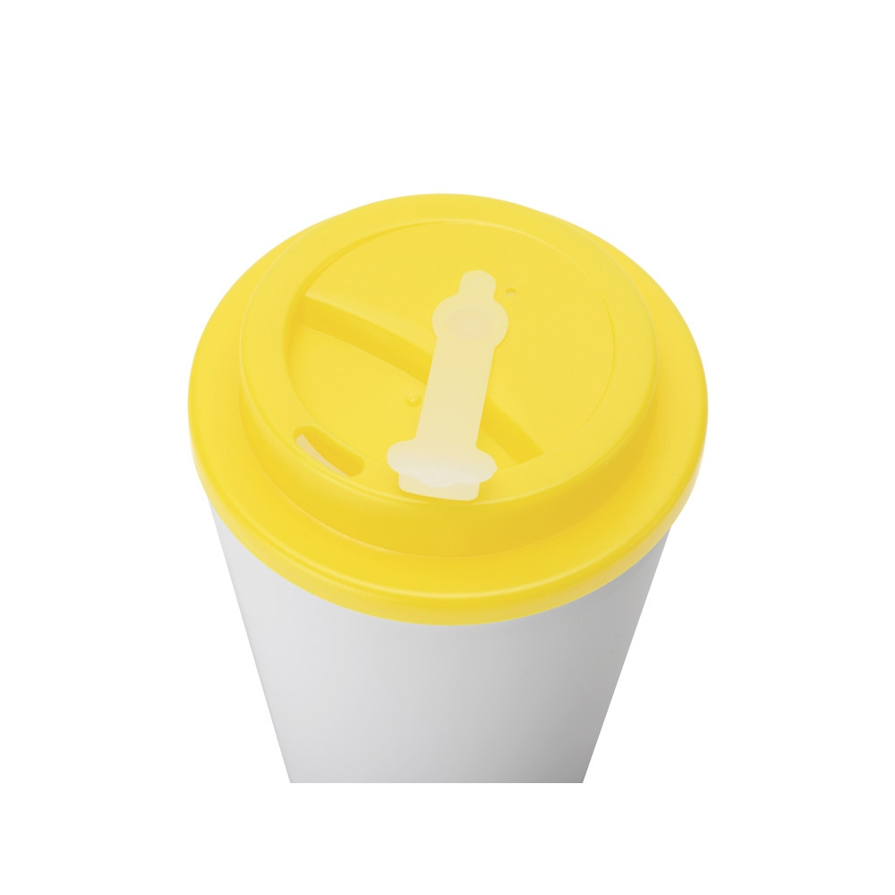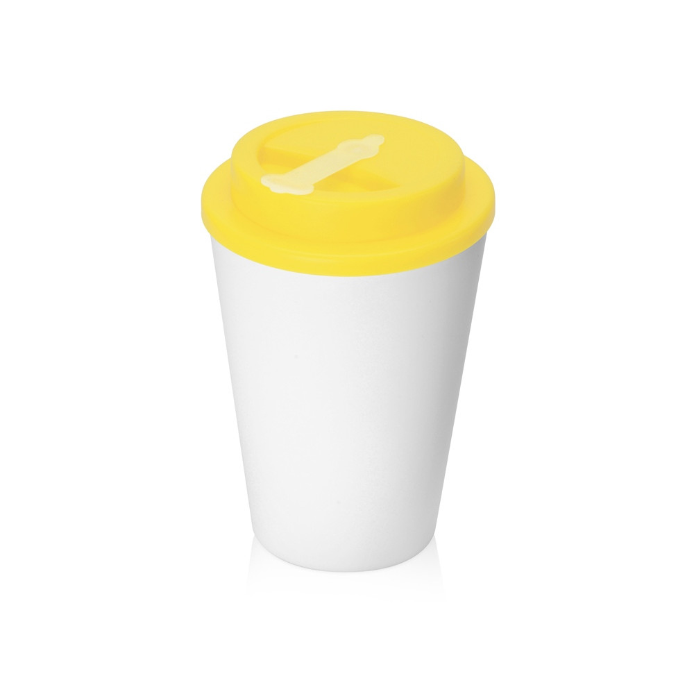 Пластиковый стакан Take away с двойными стенками и крышкой с силиконовым клапаном, 350 мл, белый/желтый