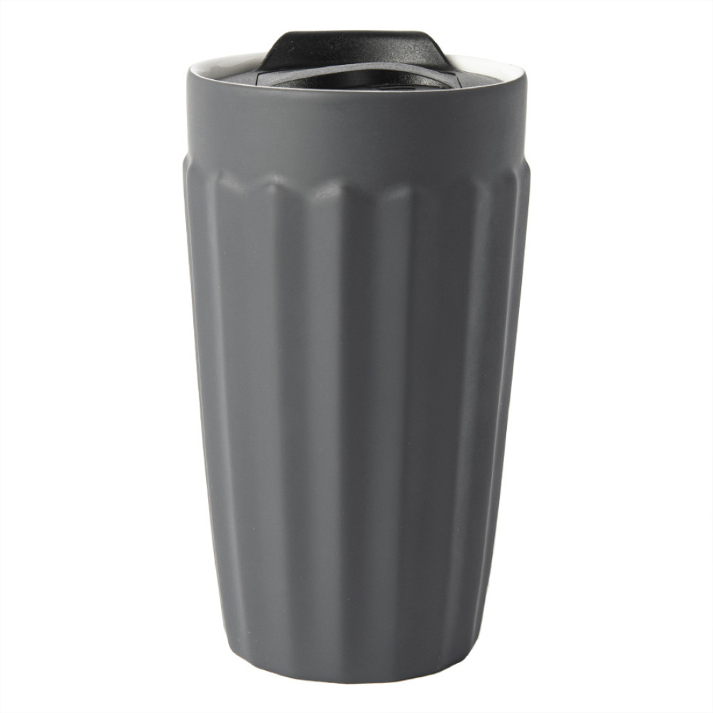 Керамический стакан с двойными стенками, имеет необычную форму с гранямиКорпус имеет прорезиненное покрытие, оно отлично подходит для лазерной гравировки: изображение получается ярким и выделяющимсяПластиковая крышка с силиконовым уплотнителем не даст вашему напитку быстро остыть, но рекомендуется использовать температуру напитков не выше 80С