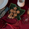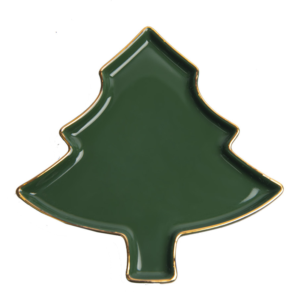 Неизменный атрибут новогоднего стола - тарелка для закусок в виде главного символа - новогодней елки!Золотой кант по краюНа тарелку можно красиво выложить разные виды сыра, мясных деликатесов или оливки.А можно просто сервировать ими стол индивидуально для каждого гостя.