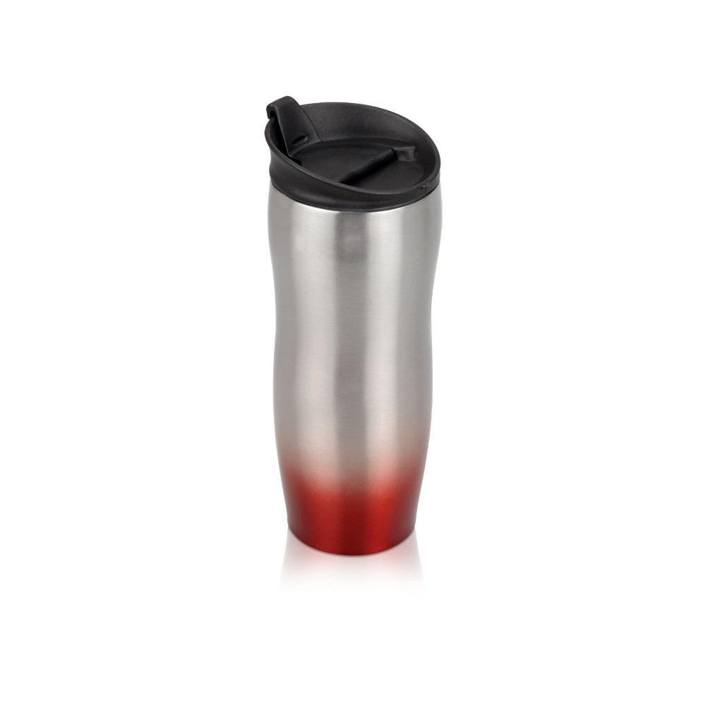 Прочная кружка на 450 мл из нержавеющей стали сохранит температуру любимого напитка в течение 4 часов. Удобная форма позволит надежно и плотно держать кружку в руке, не допуская выскальзывания. На корпус кружки можно сделать нанесение путем гравировки, создав оригинальный дизайн.