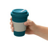 Термокружка Muffin изготовлена из экологически чистых материалов и на 70% состоит из натуральных бамбуковых волокон и кукурузного крахмала. Экокружка подходит как для горячих, так и для холодных напитков. Термокружку удобно и безопасно держать в руках, для этого на корпусе предусмотрена силиконовая манжета. При необходимости она может сниматься. Крышка содержит отверстие для питья, через которое удобно употреблять свой любимый напиток. Кружка не содержит бисфенол А и другие вредные примеси. Объем - 450 мл.