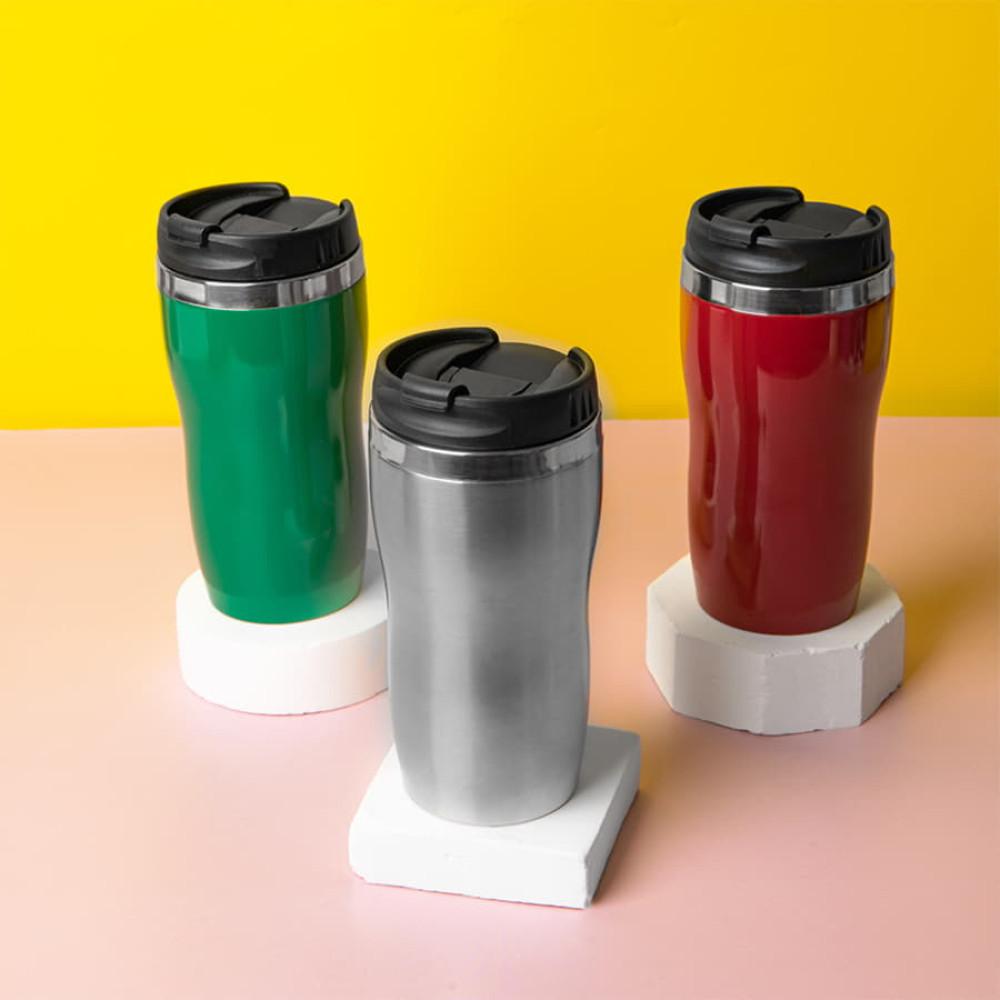 Термокружка с двойными стенками из стали марки 304, с откидным клапаном для питьяКолба из нержавеющей стали.С внешней стороны глянцевое покрытие.Идеальный продукт для промоакций.Сохраняет температуру напитков до 3 часов.Индивидуальная упаковка - коробка из белого картона