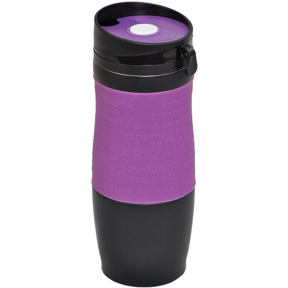 Удачи! Яркая термокружка с силиконовой манжетой. На манжете - пожелание"Удачи!" на разных языках. Pantone 2602C. Термокружки сделаны из 304 нержавеющей стали. Вы сможете сохранять ваши напитки горячими до 6 часов и холодными до 12 часов. Подходит для любых напитков. Можно использовать как для горячих, так и холодных. Как для безалкогольных, так и алкогольных. Благодаря уникальному покрытию и форме, кружка не выскальзывает из рук. Стильный дизайн и яркие сочные цвета. Это не просто обычная кружка, но еще и модный аксессуар