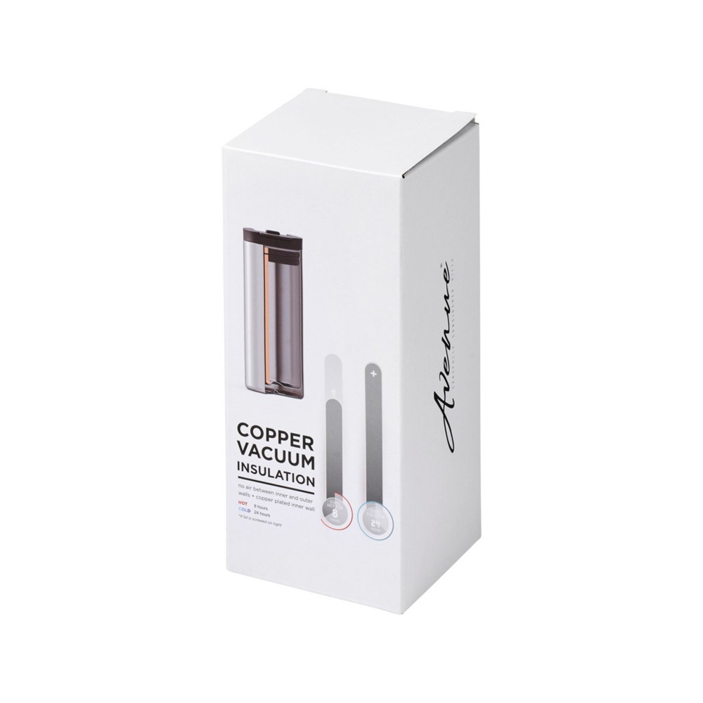 Вакуумный термостакан Lebou с медным покрытием 360 мл. Компактный и долговечный термостакан идеально подходит для работы и путешествий. Изготовлен из нержавеющей стали с двойными стенками и вакуумной, медной изоляцией, что позволяет сохранять температуру горячих напитков до 8 часов, а холодных — до 24 часов. Крышка имеет функцию блокировки. Кроме того, конструкция препятствует образованию конденсата на внешней стороне стакана. Объем — 360 мл. Представлена в подарочной коробке Avenue. Нержавеющая сталь, ПП-пластик.