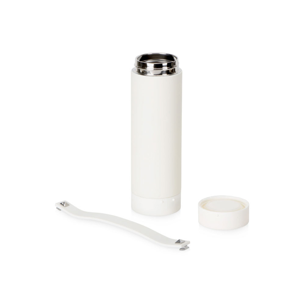 Термос выполнен из нержавеющей стали, имеет двойные стенки с вакуумной изоляцией, благодаря чему сохраняет напитки горячими до 12 часов и холодными до 24 часов.
